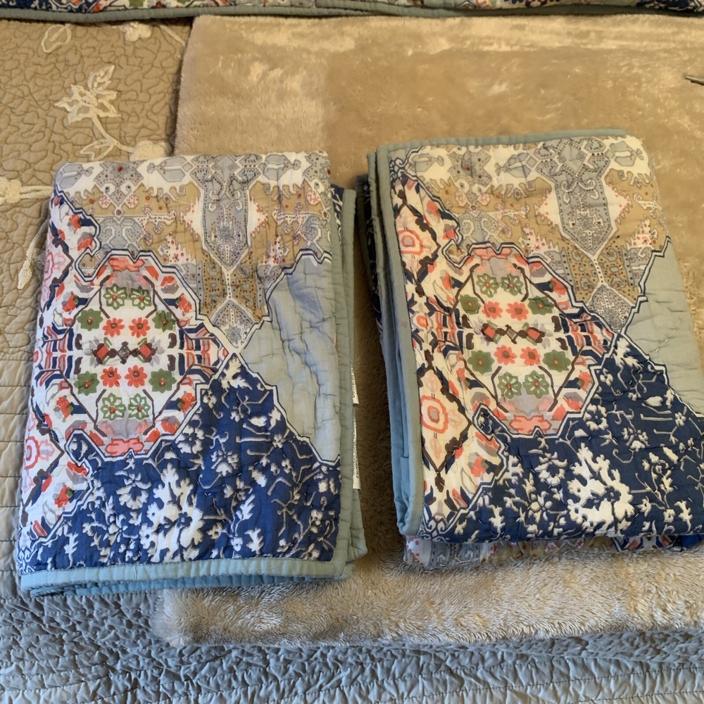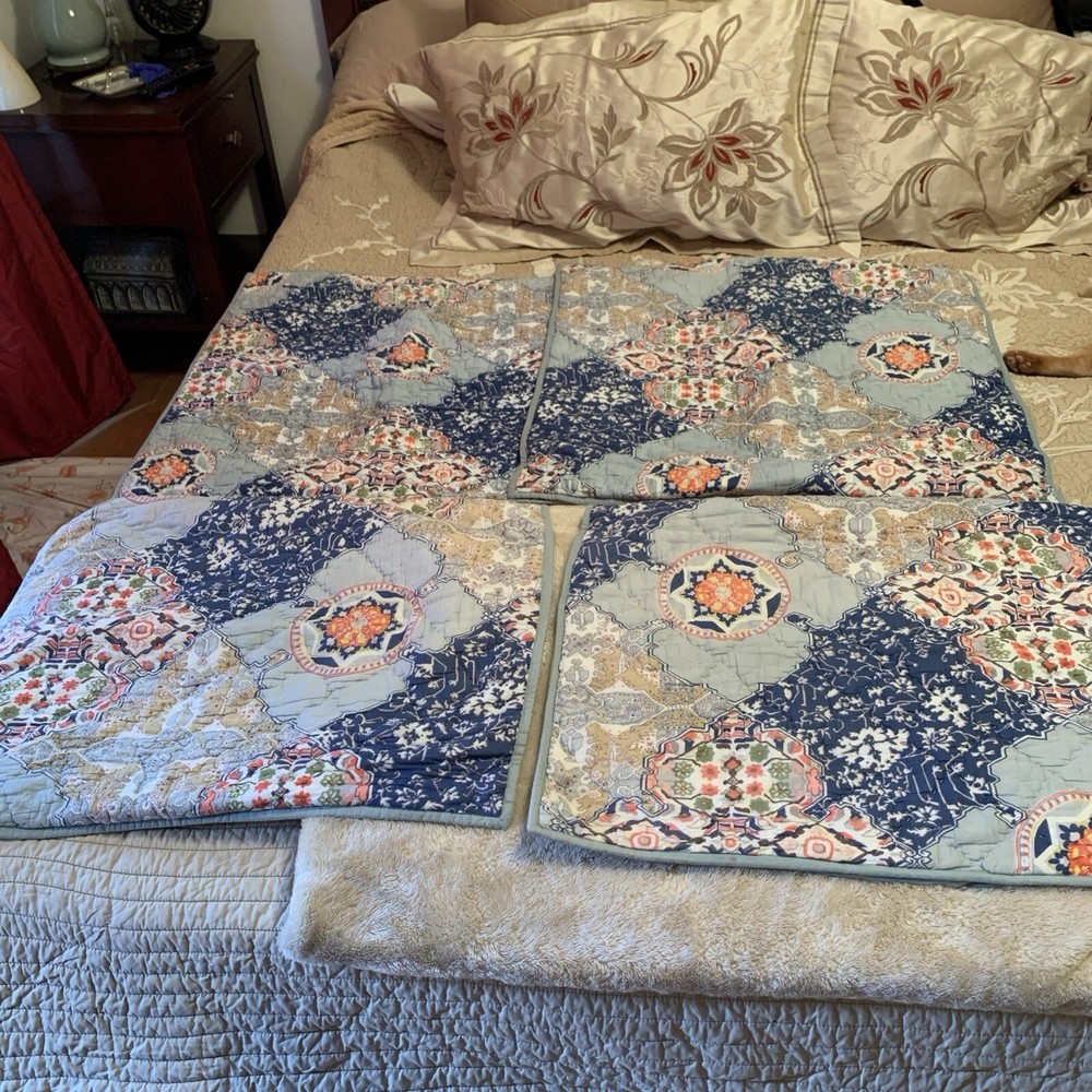 Found at a Humane society resale store that gets donations from local retailers. They may have fade, possibly display items, but I do not see any damage and the back fabric looks new. I found them in Euro also and listed as a lot of 4 but haven’t had luck selling them together, so breaking up the complete set. I’m listing them separately See my other pottery barn items The blue border is a light slate blue