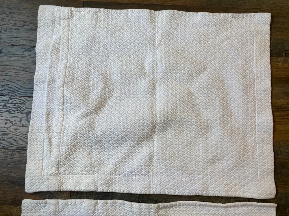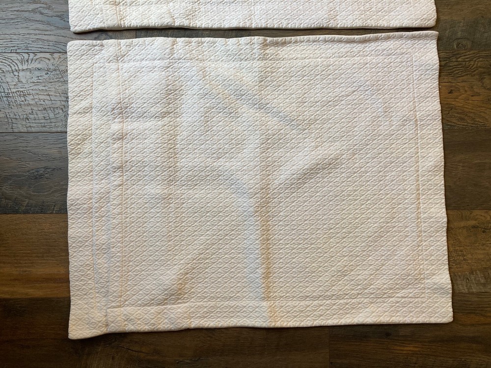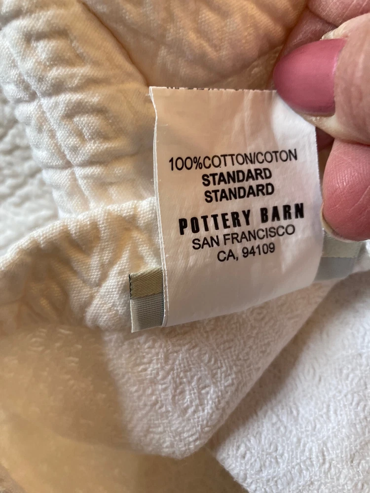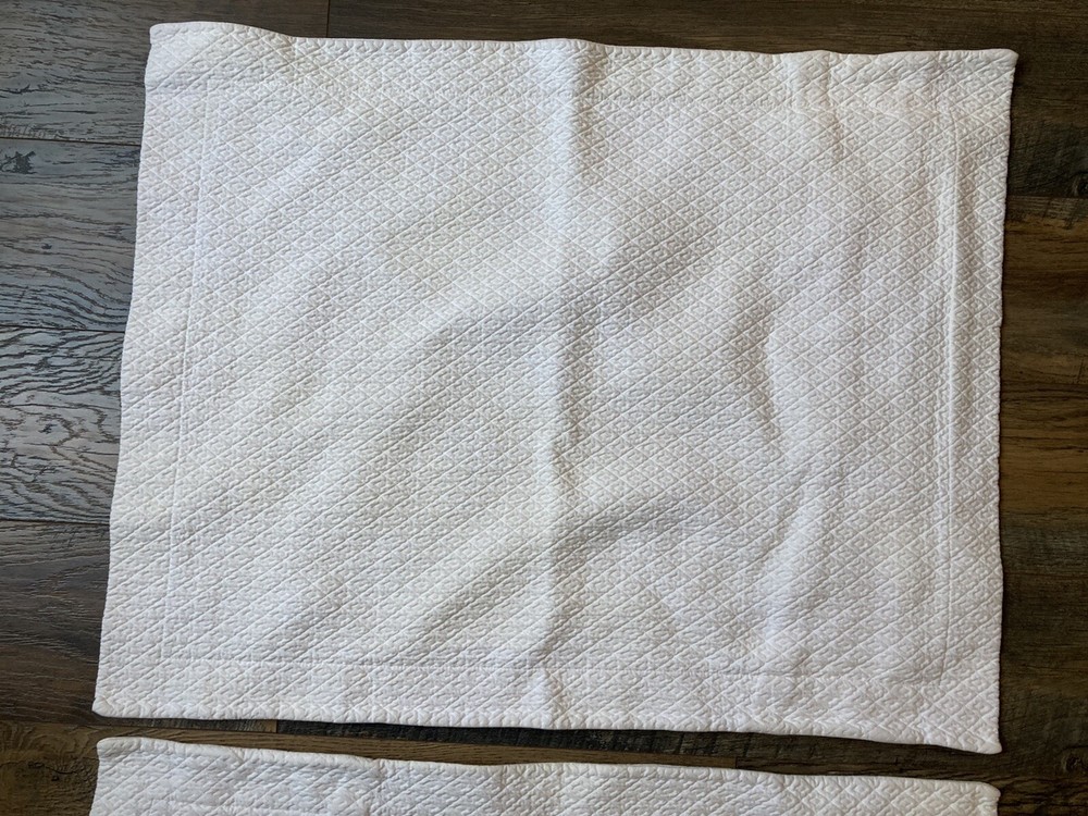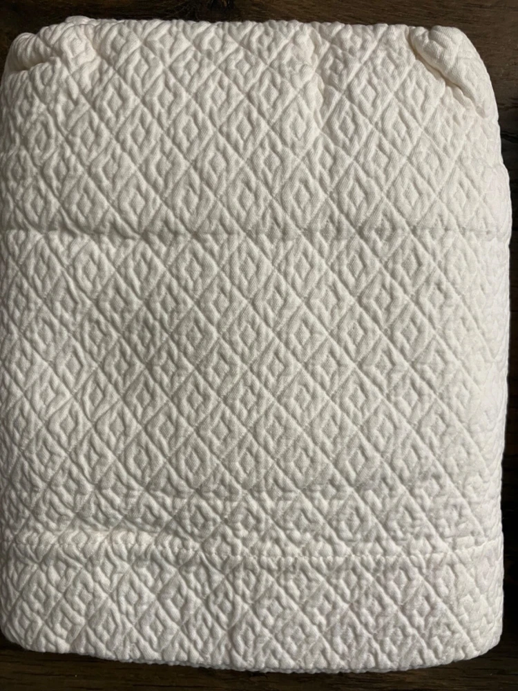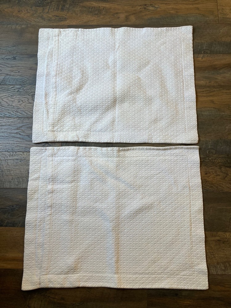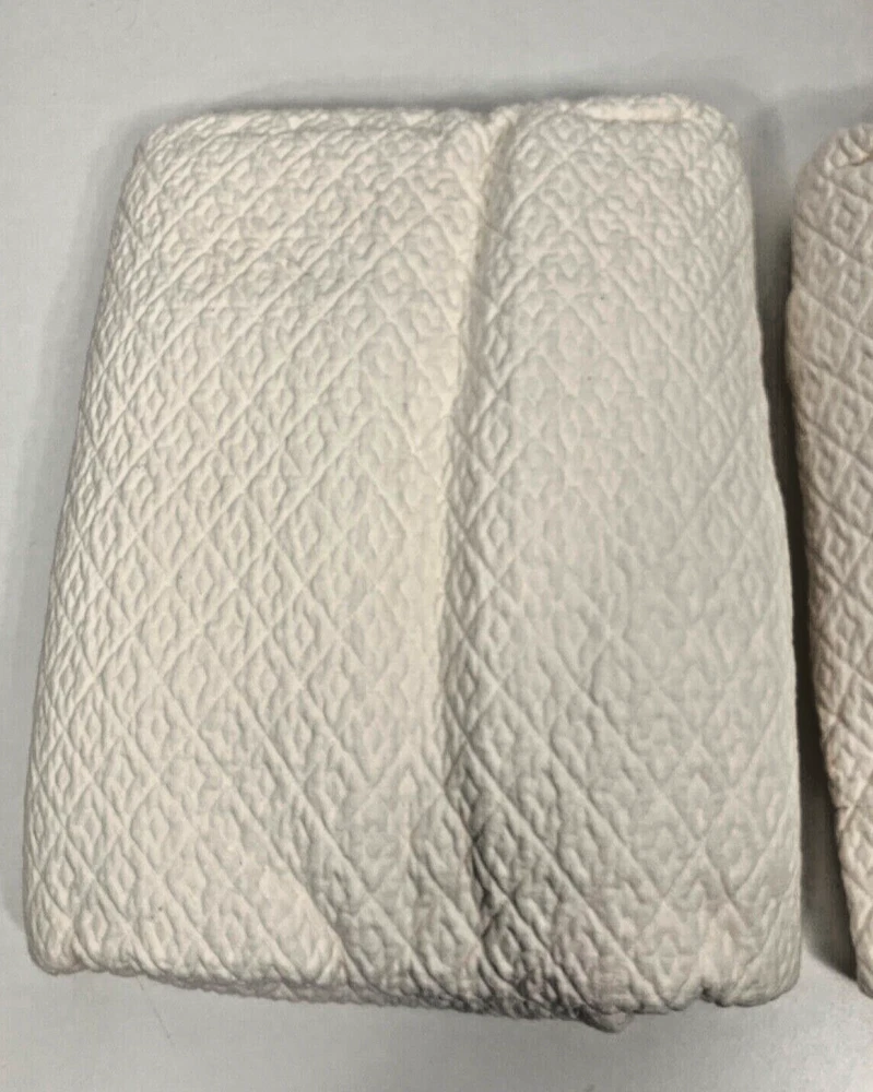 Pair of Pottery Barn Matelasse Diamond Pillow Shams Color White but not bright white Standard Size 100% cotton Very good condition. From non-smoking home.