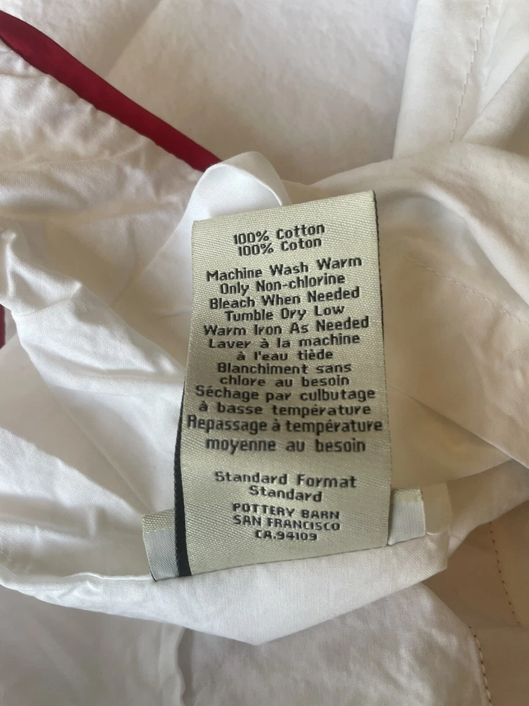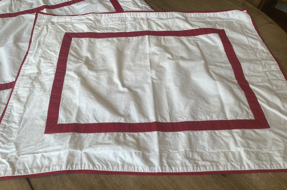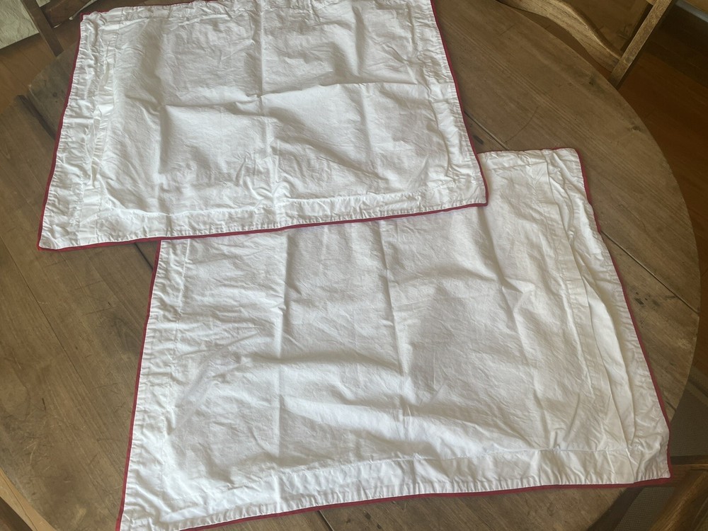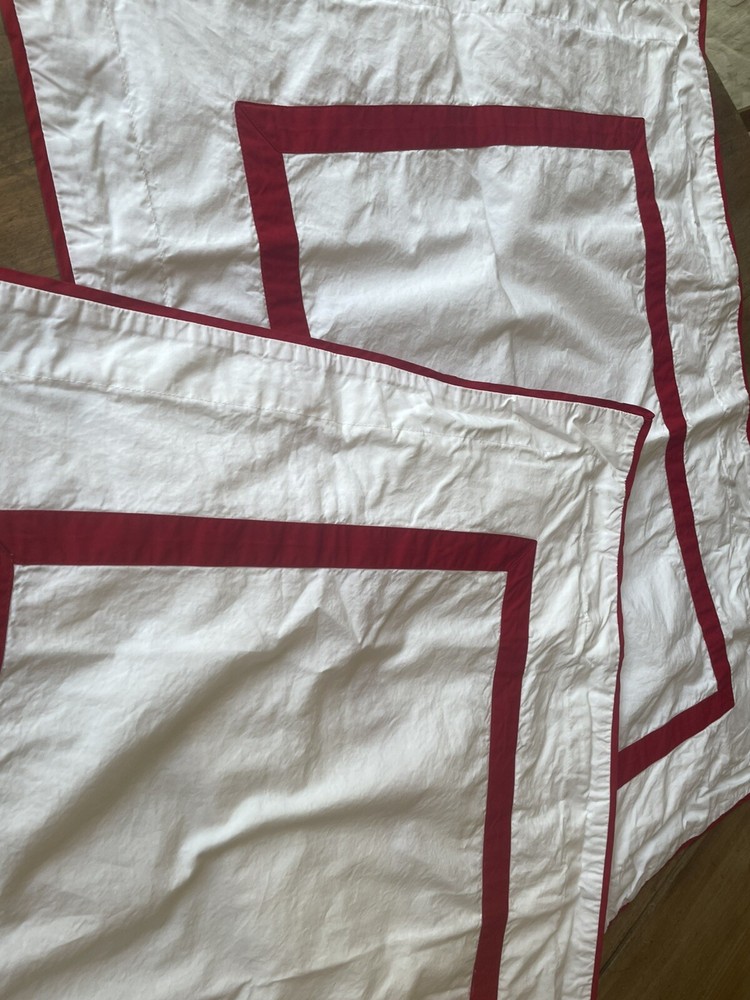 Pair Pottery Barn crisp white with red trim standard pillow shams. 100% cotton. Made in Italy. Perfect condition....