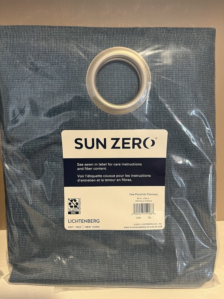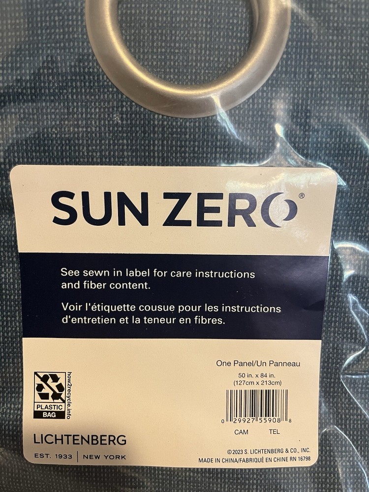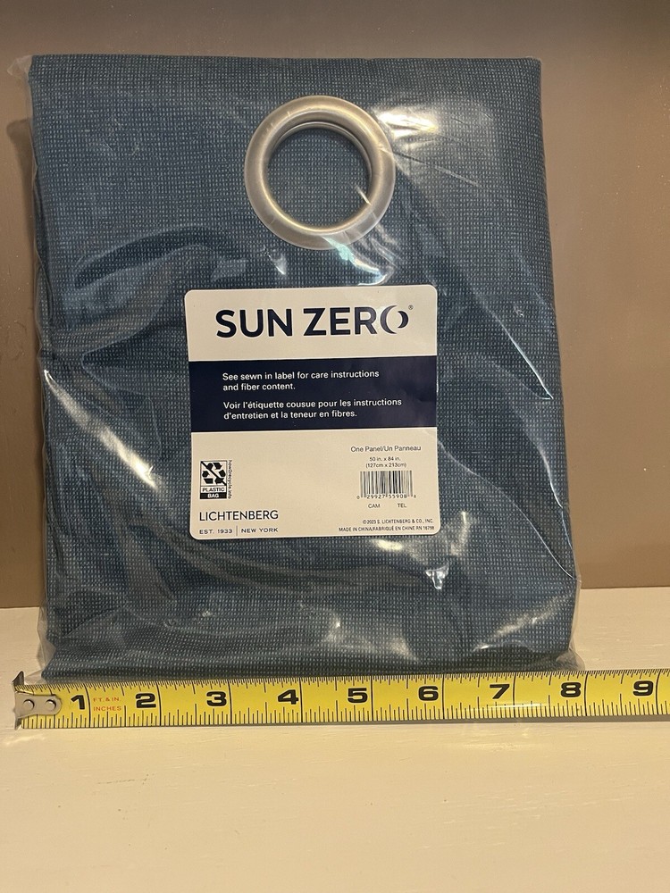 Happy Bright Summer - You need blackout curtains. Sun Zero, Lichtenberg, 50” wide by 84” long Curtain Panels with grommets. rich Teal blue color. Being sold as a pair - two panels. One panel per original packaging as shown. NEW IN PACKAGE - excellent condition - never used. Blackout style. Original price.