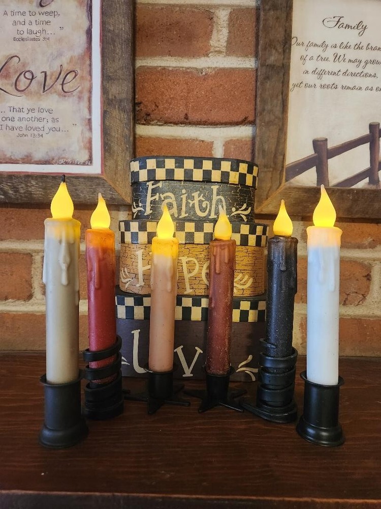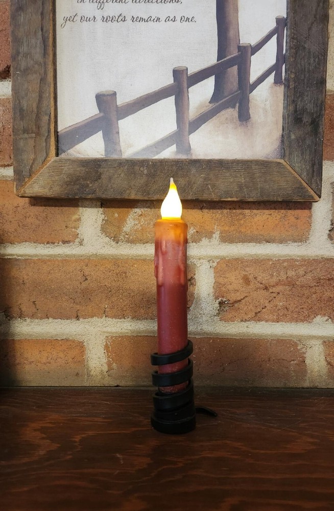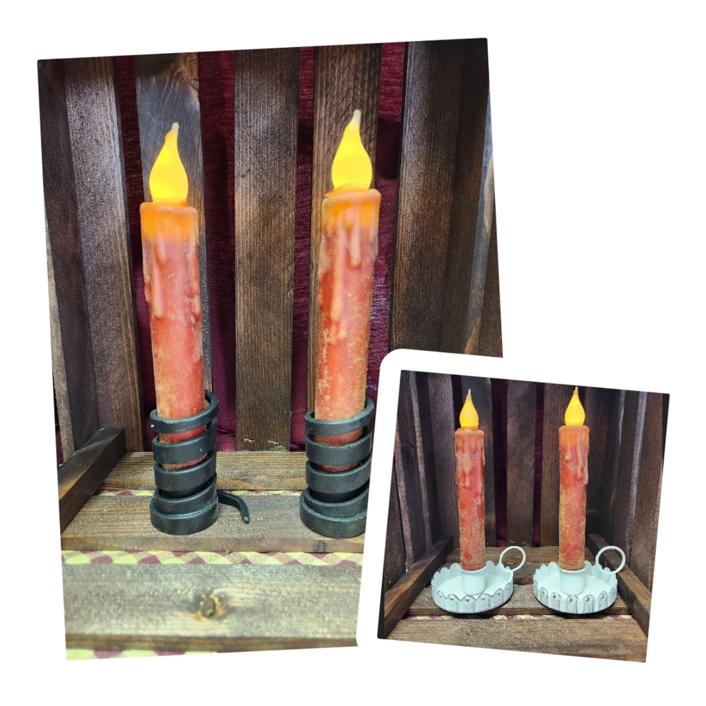Add a cozy touch to any room with this pair of 7 inch timer taper candles from Candles From Heaven. Made with beeswax and dipped wax in a beautiful farmhouse red color, these handmade candles are perfect for any country or primitive style home. The battery-operated feature makes them safe and easy to use in any room, including the porch, bathroom, sunroom, utility/laundry room, entryway, terrace, foyer, kitchen, bedroom, living room, lounge, outdoor, guestroom, indoor, and dining room. The set includes two candles, each powered by AA batteries, with a burning time of more than 5 hours. Whether you're looking to add a touch of warmth to your space or create a romantic ambiance, these candles are sure to do the trick. Order now and enjoy the soft glow of these unscented taper candles. ***Candles Holders & Pip Berry Rings NOT INCLUDED***