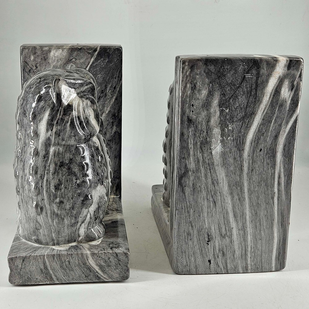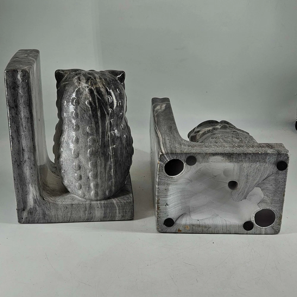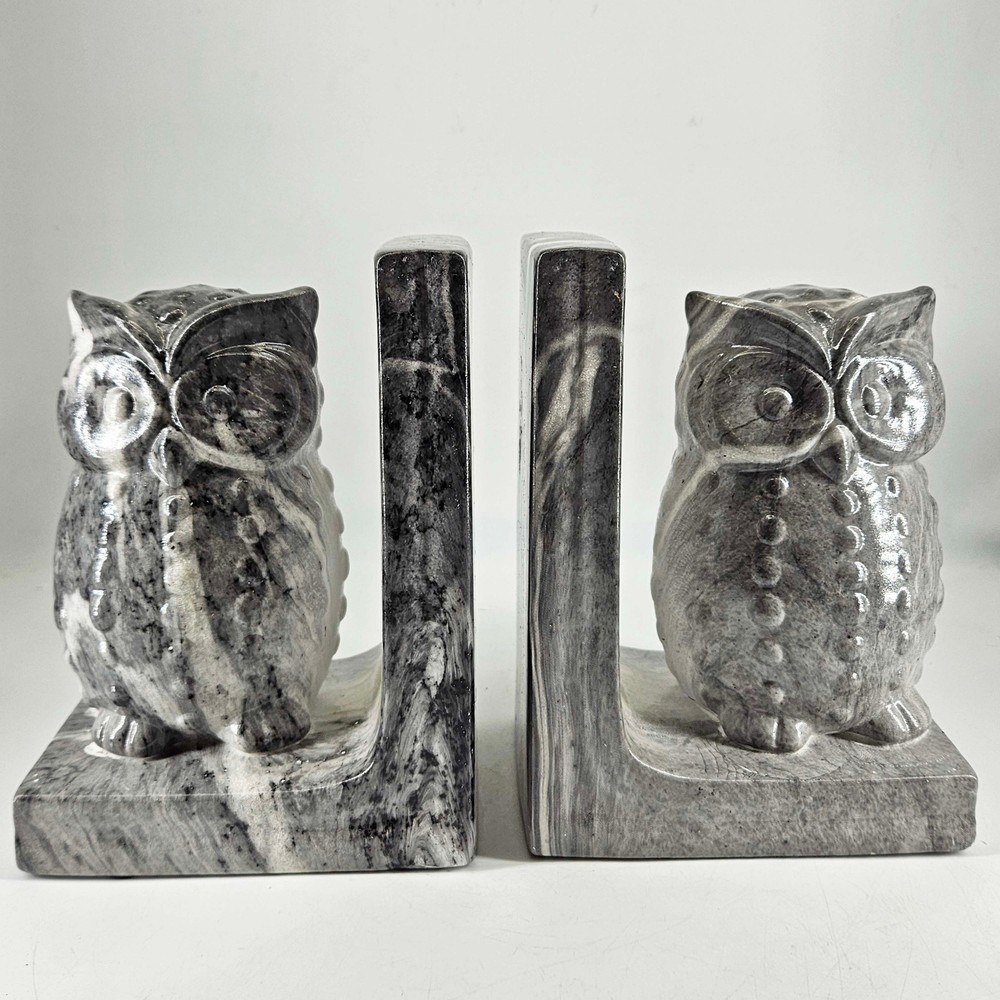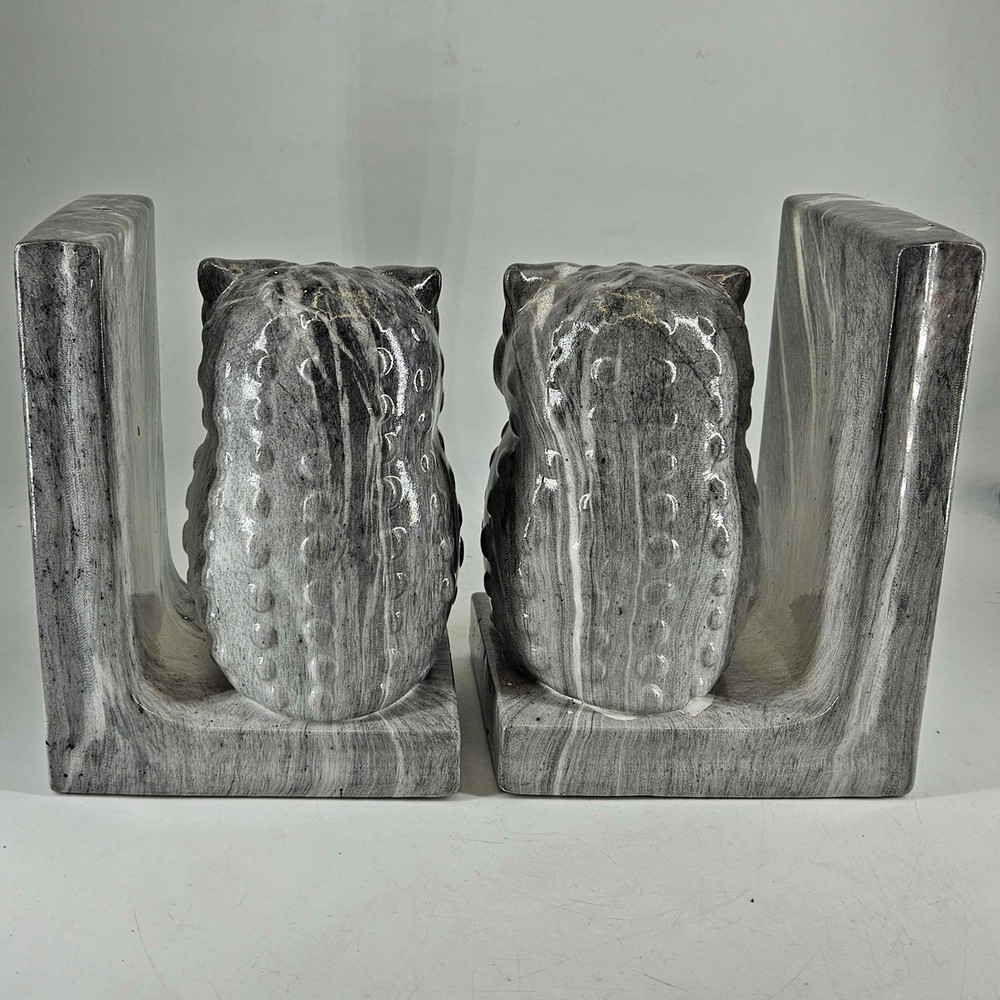 Pair of dip dyed marbled ceramic large owl bookends gray . Measures about 8" T, 5.5" X 4". In excellent condition but some spots didn't get dipped at the foot of the owls. Listing and template services provided by inkFrog