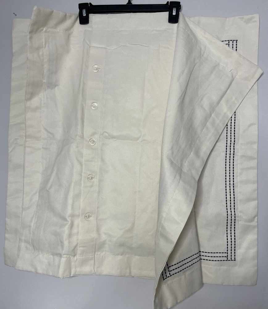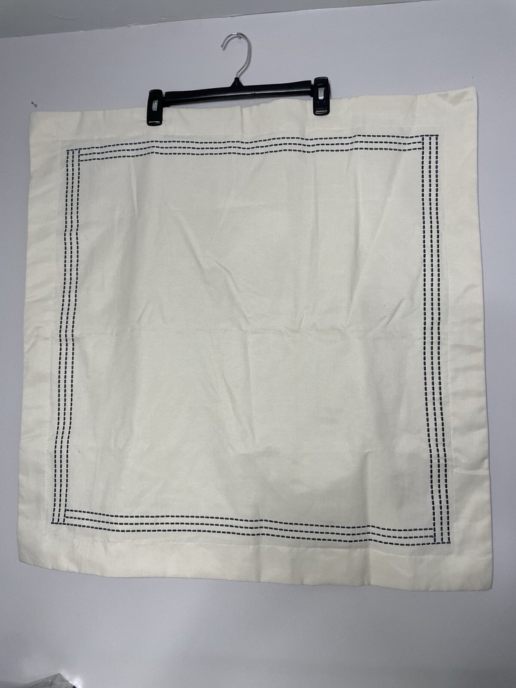 Excellent condition Add a touch of sophistication to your décor with this Madison Park blue dash embroidered pillow cover. The square pillow cover measures 26 x 26 inches and is made of a cotton blend material. The white and blue color combination gives it a contemporary style that will complement any room in your home, including the porch, bedroom, living room, lounge, and guestroom. This pillow cover features a button closure and is bordered with an embroidered dash pattern. It is machine washable and dry cleanable, making it easy to maintain. This item weighs 8 oz and is perfect for those who want to add a touch of elegance to their home décor.