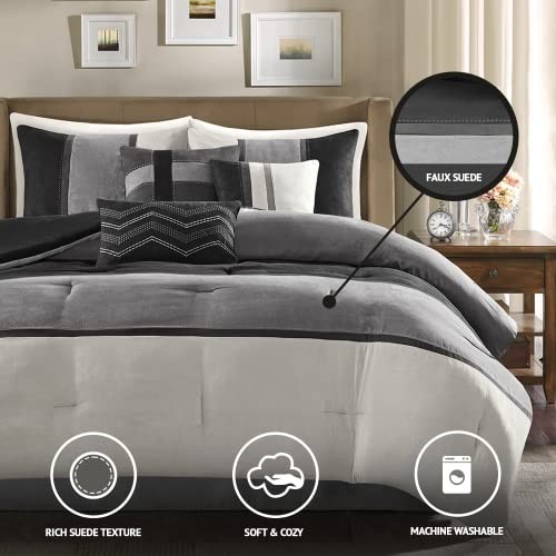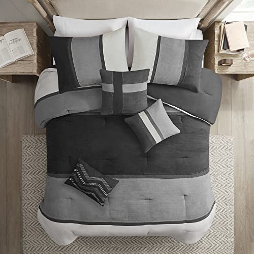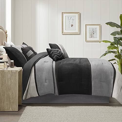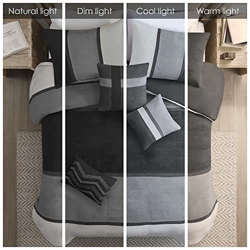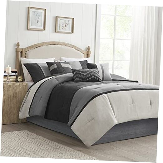 Return Policy Fast Delivery Trusted seller Palisades Comforter Set Modern Faux Suede Pieced Stripe Design, All Season Down Alternative Cozy Bedding with Matching Shams, Decorative Pillows, Cal King(104"x92"), Black 7 Piece Product Description 100% Faux Suede For a casual look with a flare of casual luxury and added comfort, the Palisades micro-suede comforter set is perfect for you.This set will keep your warm in the winter but is lightweight enough to keep you cozy during the warm months as well Crafted from premium micro-suede, this bed offers a luxurious and velvety feel. Its unique pieced design combines an array of colors for a harmonious and versatile look that can effortlessly complement any existing décor, adding depth and dimension to your space Items in the set may come in a rolled or compressed packaging, which will need to be fluffed up or steam ironed before use to remove wrinkles Set Includes: 1 Comforter:104"W x 92"L, 2 King Shams:20"W x 36"L, 1 Bedskirt:72"W x 84"L + 15"D, 3 Decorative Pillows:16"W x 16"L/12"W x 18"L/18"W x 18"L Care instructions: Machine wash, gentle cycle and separately. Spot clean decorative pillows. Do not bleach. Tumble dry low, remove promptly. Do not iron. If t is no free movement in the washer or dryer, use large capacity commercial washer/dryer. Shipping Returns Payment Shipping Shipping is FREE to all addresses other than APO/PO boxes in the lower 48 states. All our stock ships from US-based warehouses. Shipped via USPS or UPS (depending on location and package weight) Unless stated otherwise, all orders will ship within 24-72 hours of your payment being processed. Check our feedback to see the great reviews of FAST shipping we offer. Returns Seller does not accept returns Payment We currently accept payment via eBay managed payments only. Once payment is cleared, we will dispatch your shipment within 1-3 business days. Please refer to the "Shipping" tab for more information regarding shipping speed to your destination.