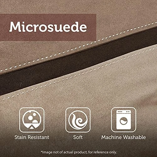 The 7 Piece Palisades Comforter Set offers you a casual alternative in fashion bedding. The reverse of the comforter is solid coral. The soft microsuede in ivory, coral and brown is pieced together to create this beautiful bed. The decorative pillows are embroidered and pieced to add a decorative element to this simple, yet beautiful bedding collection. With hypoallergenic filling in the comforter and pillows, this stylish comforter set easily refreshes your bedroom decor and is machine washable for easy care. For a casual look with a flare of casual luxury and added comfort, the Palisades micro-suede comforter set is perfect for you.This set will keep your warm in the winter but is lightweight enough to keep you cozy during the warm months as well Crafted from premium micro-suede, this bed offers a luxurious and velvety feel. Its unique pieced design combines an array of colors for a harmonious and versatile look that can effortlessly complement any existing décor, adding depth and dimension to your space Items in the set may come in a rolled or compressed packaging, which will need to be fluffed up or steam ironed before use to remove wrinkles Set includes: 1 Comforter:104x92", 1 Bedskirt:78x80+15", 2 King Shams:20x36", 3 Decorative Pillows:18x18"/10x18"/12x18" Care instructions: Machine wash, gentle cycle and separately. Spot clean decorative pillows. Do not bleach. Tumble dry low, remove promptly. Do not iron. If there is no free movement in the washer or dryer, use large capacity commercial washer/dryer.