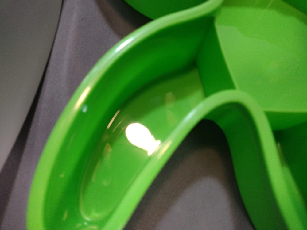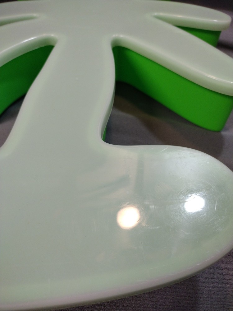 The icon on the plastic indicates that this is a food safe plastic! It has a total of nine sections and the lid seals quite well for storing leftovers. Pre-owned very good condition -- not sure if this one was ever actually used for food; it is doubtful-- the interior is glossy and smooth and appears unused; the lid has suffered light exterior surface scuffing if you look at it in glare but looks nice overall-- please see photos!