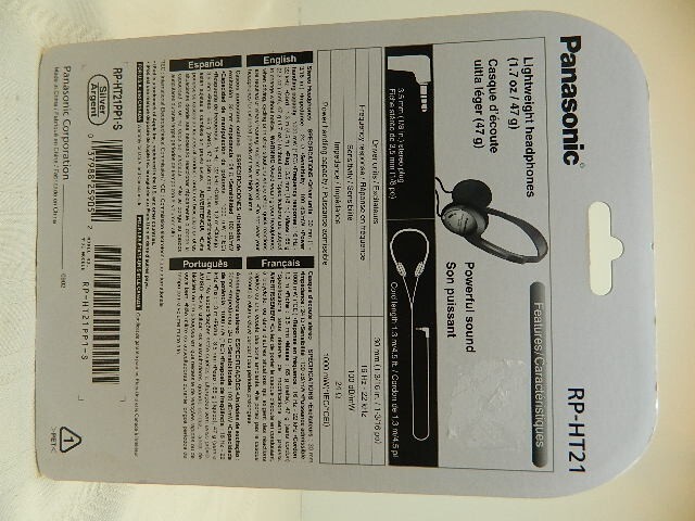 Panasonic NEW Comfort Fit RP-HT21 Stereo Headphones For iPod MP3 CD 3.5 mm Plug 4.5 ft cord Driver Units 30mm Frequency Response 16Hz - 22kHz Sensitivity 100dB/mW Impedance 24Ohm