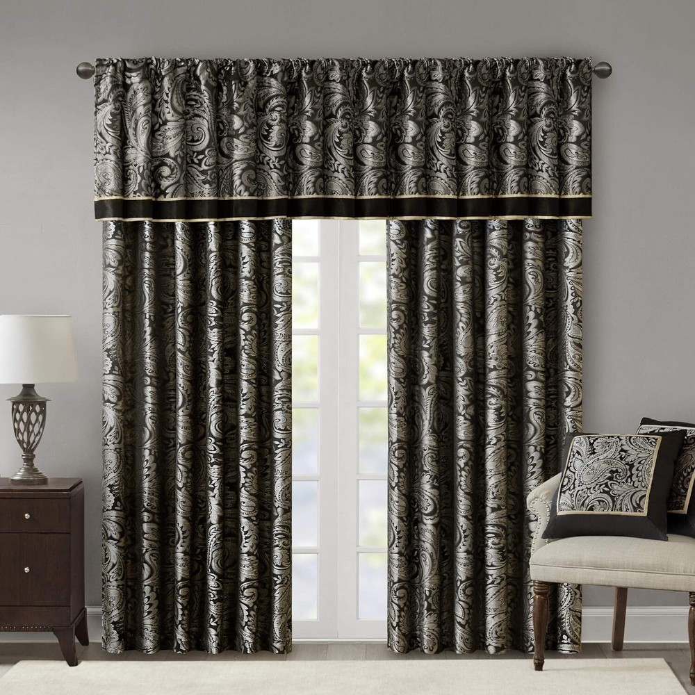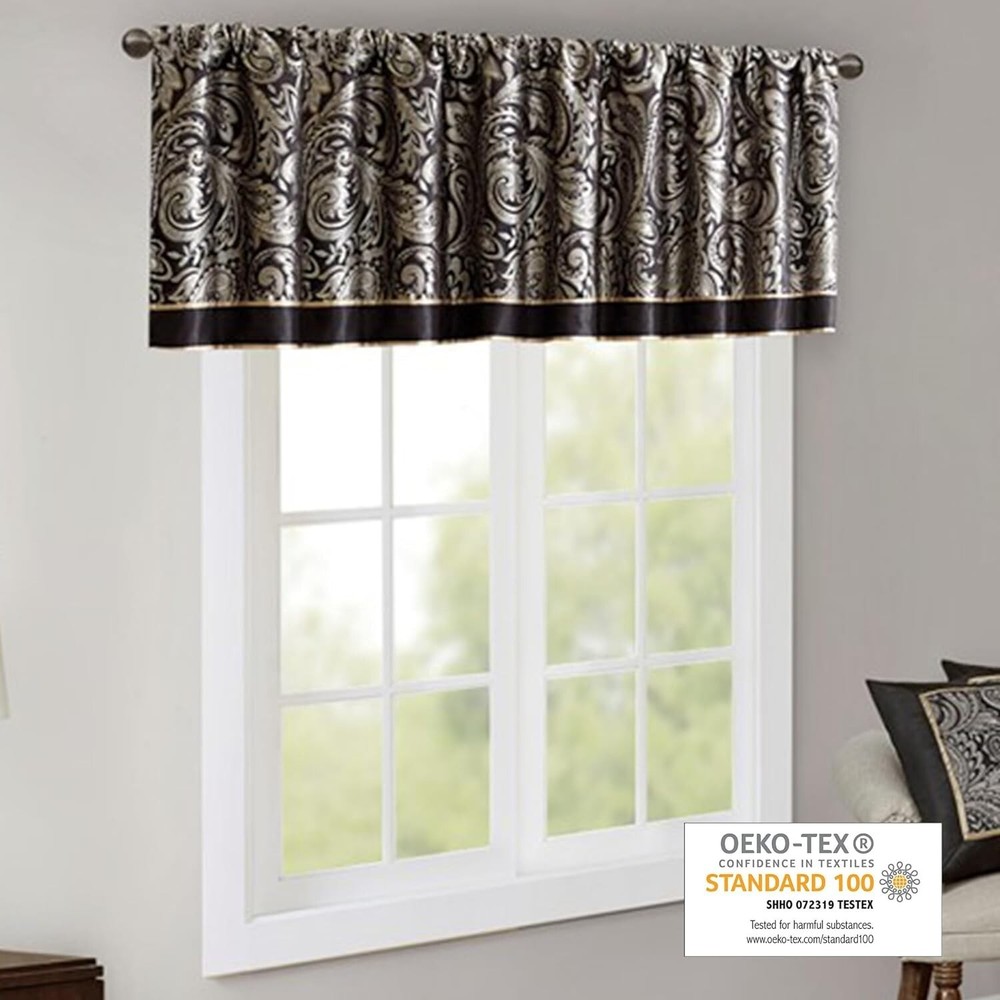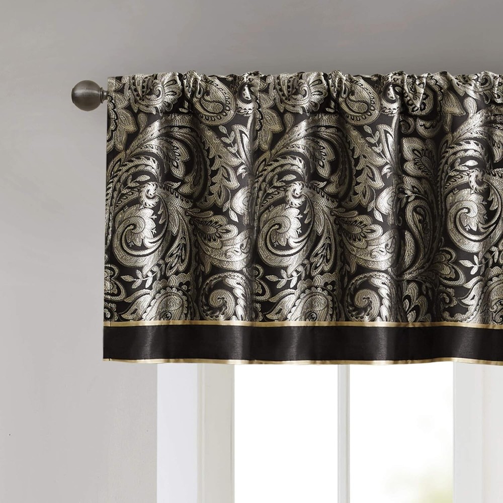 100% Polyester, Rod Pocket NEW & TRENDY - The Madison Park Aubrey Beaded Valance is the perfect extra touch to your decor. The alluring jacquard weave is inspired from an updated paisley motif and is woven in beautiful hues for a shimmering accent. The window valance features solid faux silk piecing and flat piping details, while delicately finished with a scalloped bottom design and intricate bead trim, creating an intriguing elegant look. For added sophistication, it comes with back tab rod pocket to fit curtain rods up to 1.25 inch in diameter. Complete the collection with coordinating window curtains and bedding set, each sold separately. PRIVACY - The living room curtain valances come with back lining for added privacy and better drapability. It also increases its ability to dim outside light coming in creating more cozy ambiance ROD POCKET - This elegant small kitchen window curtain features a rod pocket to conceal/cover the curtain rod creating a more professional tailor look; the rod pocket can fit rods up to 1.25 inch in diameter MEASUREMENT - 1 Window Valance: 50"W x 18"L CARE - Machine wash cold on gentle cycle, tumble dry on low heat, wash alone, do not bleach