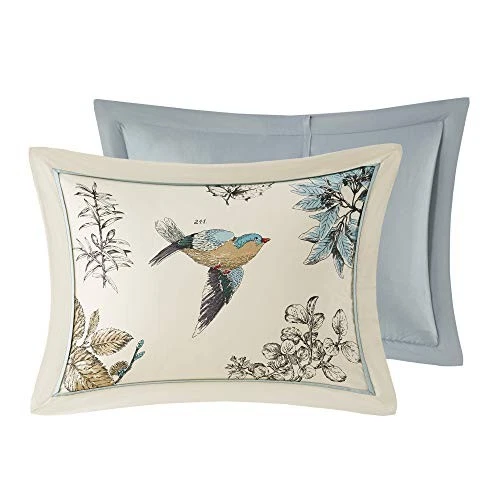 The Madison Park Quincy 7 Piece Comforter Set brings a warm country update to your bedroom. This cotton twill comforter features a classic leaf and bird print on the face with a solid reverse that adds a splash of color to the cottage look. Two matching shams pair perfectly with the comforter and three decorative pillows add dimension. A solid bed skirt provides the finishing touch, completing the comforter set. This bedding set is also OEKO-TEX certified, meaning it does not contain any harmful substances or chemicals to ensure quality comfort and wellness. The Madison Park Quincy 7 Piece Comforter Set brings a warm country update to your bedroom. This cotton twill comforter features a classic leaf and bird print on the face with a solid reverse that adds a splash of color to the cottage look. Naturally breathable and lightweight cotton fabric paired with hypoallergenic filling for a perfect all season bedding. Set includes: 1 Comforter:104"W x 92"L, 3 Decorative Pillows:18"W x 18"L/16"W x 16"L/12"W x 18"L, 2 King Shams:20"W x 36"L, 1 Bed Skirt:78"W x 80"L + 15"D Care instructions: Machine wash cold, gentle cycle, and separately. Do not bleach. Tumble dry low, remove promptly. Do not iron. Spot clean pillows. If there is no free movement in the washer or dryer, use large capacity commercial washer/dryer.