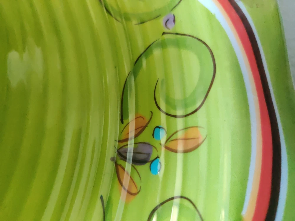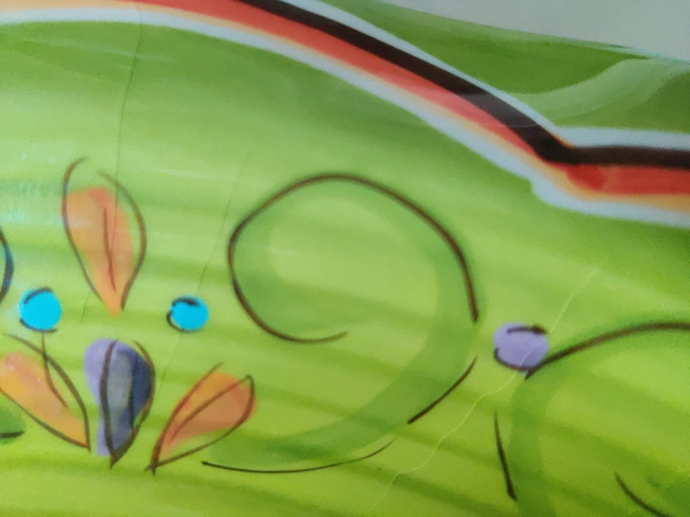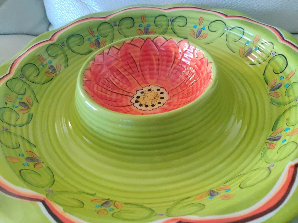 Pier 1 Pasilla Chip & Dip Bowl Appetizer Tray Fiesta nacho flower 13.5" hand painted. Good pre owned condition. Some crazing. 1 small pictured chip in the glaze. See photos for description.