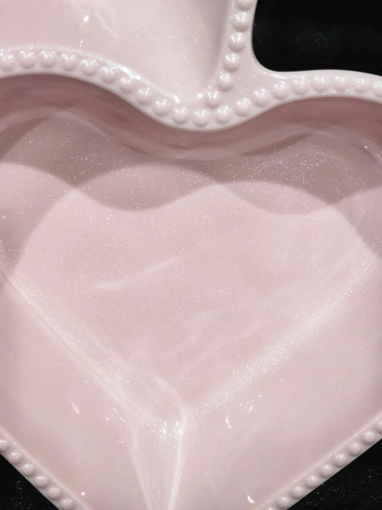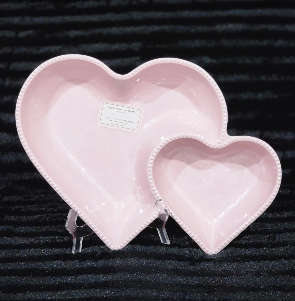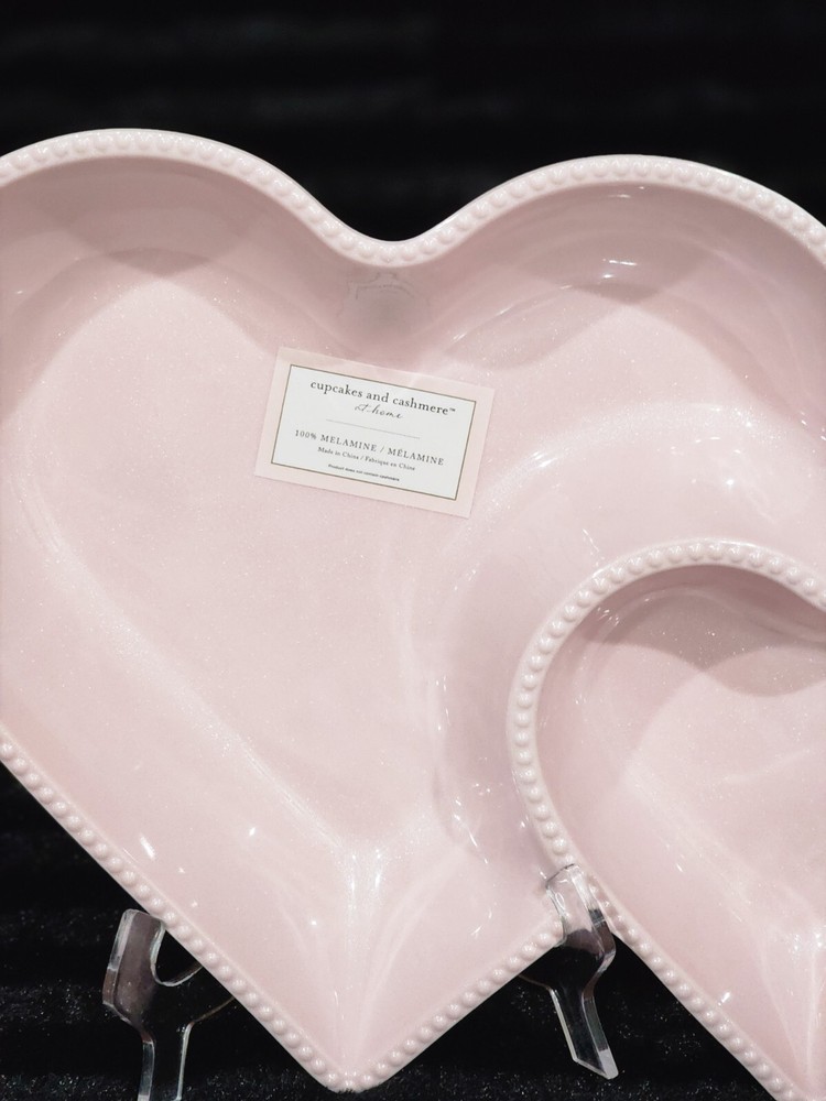 This listing is for a Cupcakes and Cashmere Pastel Shimmery Pink Valentine's Day Figural Hearts Melamine Chip 'n Dip Tray. It features a figural double set of hearts, one large and one small, attached together with a tiny pearl beaded trim against a glistening, shimmery pastel pink background. The back side is the same color pink but not in the shimmery state. Valentine's Day will be here soon and this is a great fun little tabletop tray to enjoy for the February 14th holiday, a baby shower, a bridal shower, a wedding, or even every day! It measures 16.25" x 11.25" x 2.25" and weighs 1 lb 3 oz. It is brand new with original tags and/or stickers attached. Please see the attached photos for more details/description. If you have any questions, please feel free to ask. I ship on the same day payment is made IF it is received by 12 noon pm PST the same day M-F. Shipping rates apply to the contiguous 48 states of the USA only. Feedback is left for buyers after purchase has been completed. Should our services meet your approval, we would greatly appreciate your feedback. Should you have a problem or issue with your order, please afford us the opportunity to make amends or resolve the issue before feedback is left. Our highest priority is your total satisfaction. Thanks for looking and checking out my store. I add new items frequently, so please come back! I appreciate the opportunity to do business with you. Valentine's Day, Hearts, Cupcakes and Cashmere, Love, Valentine Tabletop, Fall, Kitchen, Home Decor, Trending, Designer, Home Gift, Gift, Luxury, Hostess Gift, Tik Tok, Viral, Colorful, Fun, Novelty, Classic, Christmas, Christmas Plates, Holiday, Holiday Plates