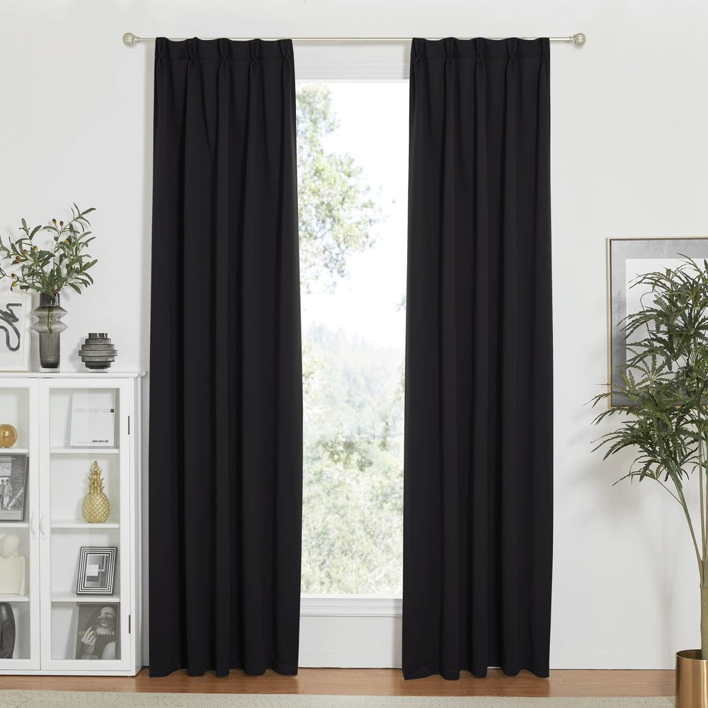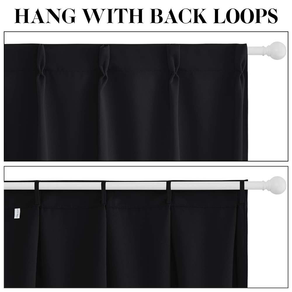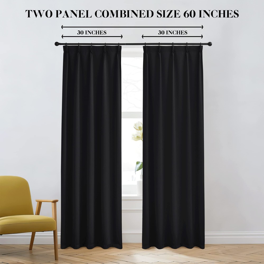 Blackout Curtains Elegant Design: 2 panels per package. Each blackout curtain measures 30" wide. The design of back tab (1.9-inch diameter) creates casual elegance for your house. And pinch pleats are...