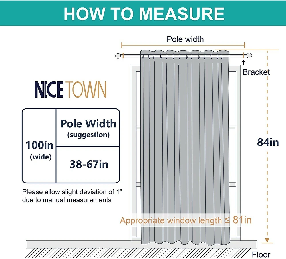 Patio Sliding Door Curtain, Wide Blackout Curtains, Gray - 100"W x 84"L - NEW. Condition is New. Non-Continental US/PO Boxes Ship Times May Vary. Polyester Imported AMAZING FABRIC: The blackout curtain's fabric is super soft and heavily innovative triple-weave polyester fabric. The Same material back as of front makes it appear more elegant. The 14 sliver grommets top (inner diameter is 1.6-inch) adds a modern touch and easy hanging. MULTIPLE FUNCTIONAL: These extra wide curtains are wide enough to cover the sliding door perfectly. Besides, the curtain panel helps your patio door to block out most of the light and UV rays, high performance on thermal insulated, noise reducing and privacy-protecting. ENERGY SMART: Triple weave blackout fabric balances room temperature by insulating against summer heat and winter chill, reducing air conditioning costs. Protect your furniture, floors, and artwork from the ravages of the sun, the Patio Door Drapes will pay for themselves off over time. WISE COMPATIBLE: Thread trimmed and wrinkle-free, all sets for you to put them up right away. Suitable perfectly for sliding door, patio door, and any large window. These wide curtains can be hung separately, or combine with NICETOWN sheer curtains. EASY CARE: Good quality finishing will withstand years of use. Machine washable and Wash the water temperature below 87F. Mild detergent no bleaching. Low-temperature ironing. Don’t use sharp things scratching curtains.