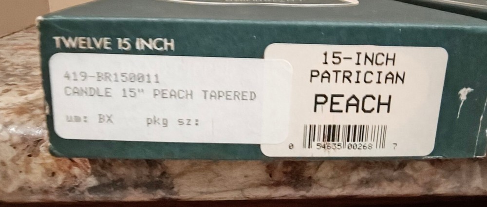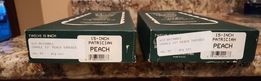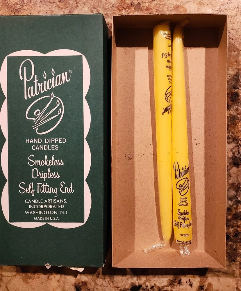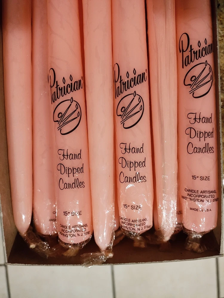 Light up your home with these beautiful Patrician taper candles. Hand-dipped with care, each candle is a unique work of art. Measuring 15 inches in size and coming in a vibrant peach color, they are perfect for adding a touch of warmth and elegance to any room. This set includes 24 candles in total, divided into 2 sets of 12. Made with high-quality materials, they are sure to provide a long-lasting and beautiful flame. Whether you're setting the mood for a romantic dinner or creating a peaceful atmosphere for meditation, these candles are the perfect addition to your home decor. BONUS: 2 Yellow 10" Patrician Hand Dipped Candles.