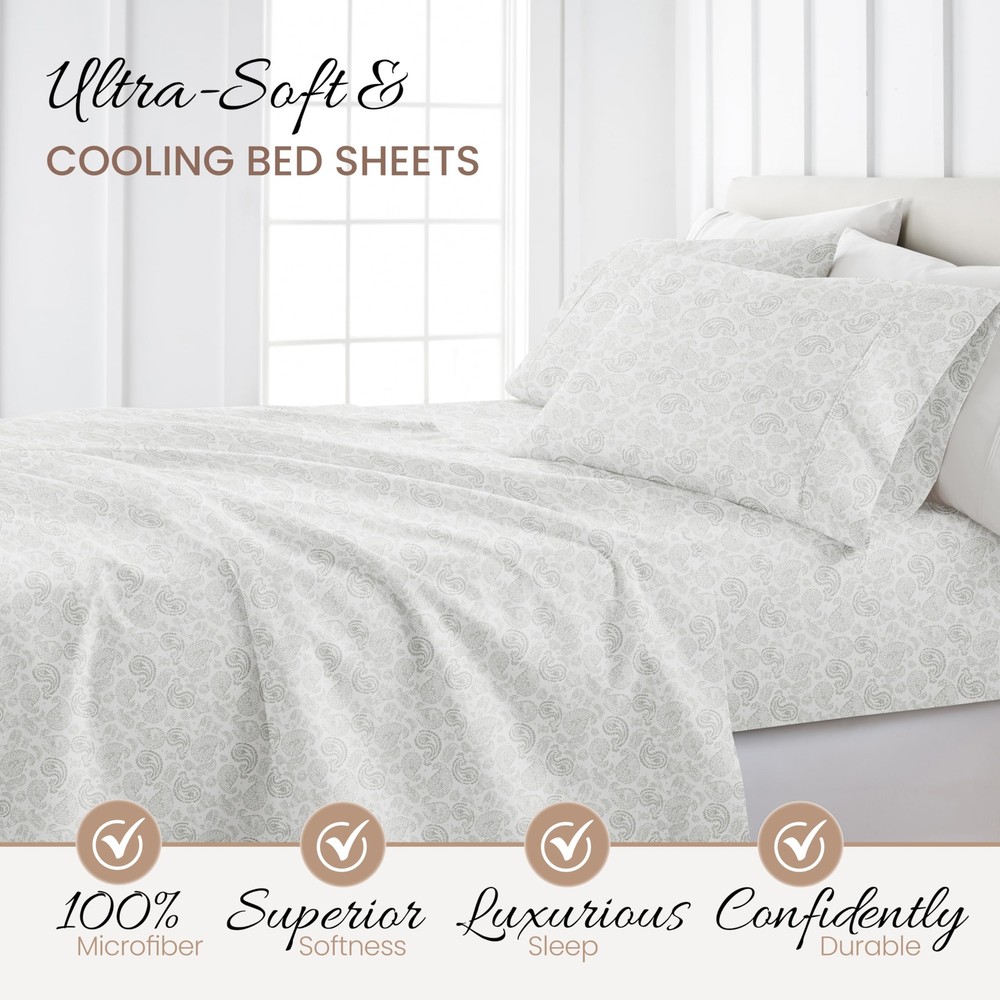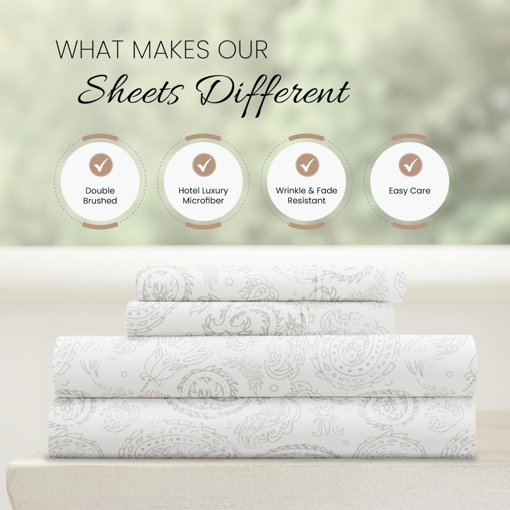 LUXURY AND COMFORT-You'll be amazed at how silky soft, and comfortable these luxurious bed sheets are! iEnjoy Home luxury sheet sets are designer sheets at an unbelievable price. The perfect fit for any room in your house - bedroom, guest room, room, dorm room RV, vacation home. Great gift idea for men and women, Moms and Dads, Valentine's - Mother's - Father's Day, Birthday, and Christmas. CLASSIC TAILORED LOOK - Set includes: flat sheet, fitted sheet (with deep pockets), and pillowcases. Twin/TwinXL come with pillowcase. HIGH QUALITY - Ultra soft microfiber fabric woven with the finest craftsmanship. Good hand feel and very cozy to sleep on. Fade, stain, shrink and resistant. Machine wash in cold, and quick dries on tumble dry low. More durable than any cotton! TREMENDOUS SELECTION - Colors include Aqua, Black, Burgundy, Chocolate, Cream, Gold, Gray, Ivory, Light Gray, Navy, Purple, Sage, Taupe, and White. Patterns include Arrow, Blossoms, Burst of Vines, Coarse Paisley, Houndstooth, Honeycomb, Make A Wish, Mercedes, Polkadot, Puffed Chevron, Quatrefoil, Ribbon, Scallops, Soft Floral, Stippled, Thatch, Vines, and Wheatfield. QUEEN SIZE BED SHEET SET INCLUDES: 1 Queen Fitted Sheet: 60" W x 80" L + 16"; 1 Queen Flat Sheet: 90" W x 102" L; 2 Standard Pillowcases: 20" W x 30"