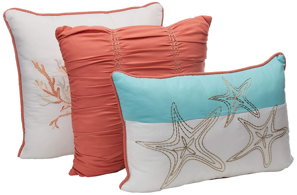 Menu Other Items Feedbacks About Us Contact Us Add To Favorites Pebble Beach Cotton Duvet Set - Coastal, Starfish, Sealife Design, All Season, Breathable Comforter Cover Bedding, Matching Shams, Decorative Pillows, Coral King/Cal King(104" X 92") 6 Pc For a vibrant coastal update to your bedroom, the Madison Park Pebble Beach 6 Piece Duvet Cover Set is perfect for you! This cotton duvet cover and shams feature a starfish and coral motif in vivid colors to brighten your space. Naturally breathable and lightweight cotton fabric that is Oeko-Tex certified to be free of any chemicals and harmful substance for a perfect all season bedding. Set includes: 1 Duvet Cover: 104"W x 92"L, 2 King Shams: 20"W x 36"L, 3 Decorative Pillows: 18"W x 18"L/16"W x 16"L/12"W x 18"L Care instructions: Machine wash cold, gentle cycle, and separately. Do not bleach. Tumble dry low, remove promptly. Do not iron. Spot clean pillows. If there is no free movement in the washer or dryer, use large capacity commercial washer/dryer. For a vibrant coastal update to your bedroom, the Madison Park Pebble Beach 6 Piece Duvet Cover Set is perfect for you! This cotton duvet cover and shams feature a starfish and coral motif in vivid colors to brighten your space. The solid reverse adds a splash of color to complement the coastal design. Three decorative pillows with embroidery and fabric manipulation add the finishing touches to the duvet cover set. This bedding set is also OEKO-TEX certified, meaning it does not contain any harmful substances or chemicals to ensure quality comfort and wellness. A button closure helps secure a comforter insert within the duvet cover and inside ties in the corners help prevent it from shifting (insert is NOT included). Item Specification Item model number MP12-2708 Color Coral Pattern Coastal Product Dimensions 104 x 92 x 0.12 inches; 7.34 Pounds Material Cotton Country of Origin China Size King/Cal King Is Discontinued By Manufacturer No Dimensions Shipping Returns Additional Info Product Dimensions: 92.0 inches x 104.0 inches x 0.12 inches. Weight: 7.34 lb Fast shipping is very important for us. Our standard shipping service is FREE. Your order will be shipped within 1-3 business days upon full payment received. Most items are delivered within 3-5 business days, however, please allow 3-10 business days. We are shipping only to USA. We only ship to the confirmed Paypal address. We reserve the right to cancel any order for any reason at any time. We are not responsible for undeliverable addresses. We offer a 30 day return policy from checkout winning date. Your satisfaction is guaranteed! If for any reason you are unhappy with your item, just return it within 30 days for a full refund, minus shipping cost. Please contact us prior to initiating a return so that we can issue you a refund authorization. Items defective upon receipt must be packaged in their retail packaging as if new and returned with a detailed description of the problem. Return shipping fees are not refundable. We reserve the right to decline any returns if the above guidelines are not followed. All of our items, unless otherwise stated, will only run on 120 volts. Please check to make sure your country complies with these specifications. If you have a problem or question regarding your transaction please contact us before leaving any type of feedback. We will work with you to resolve any problem you may have.