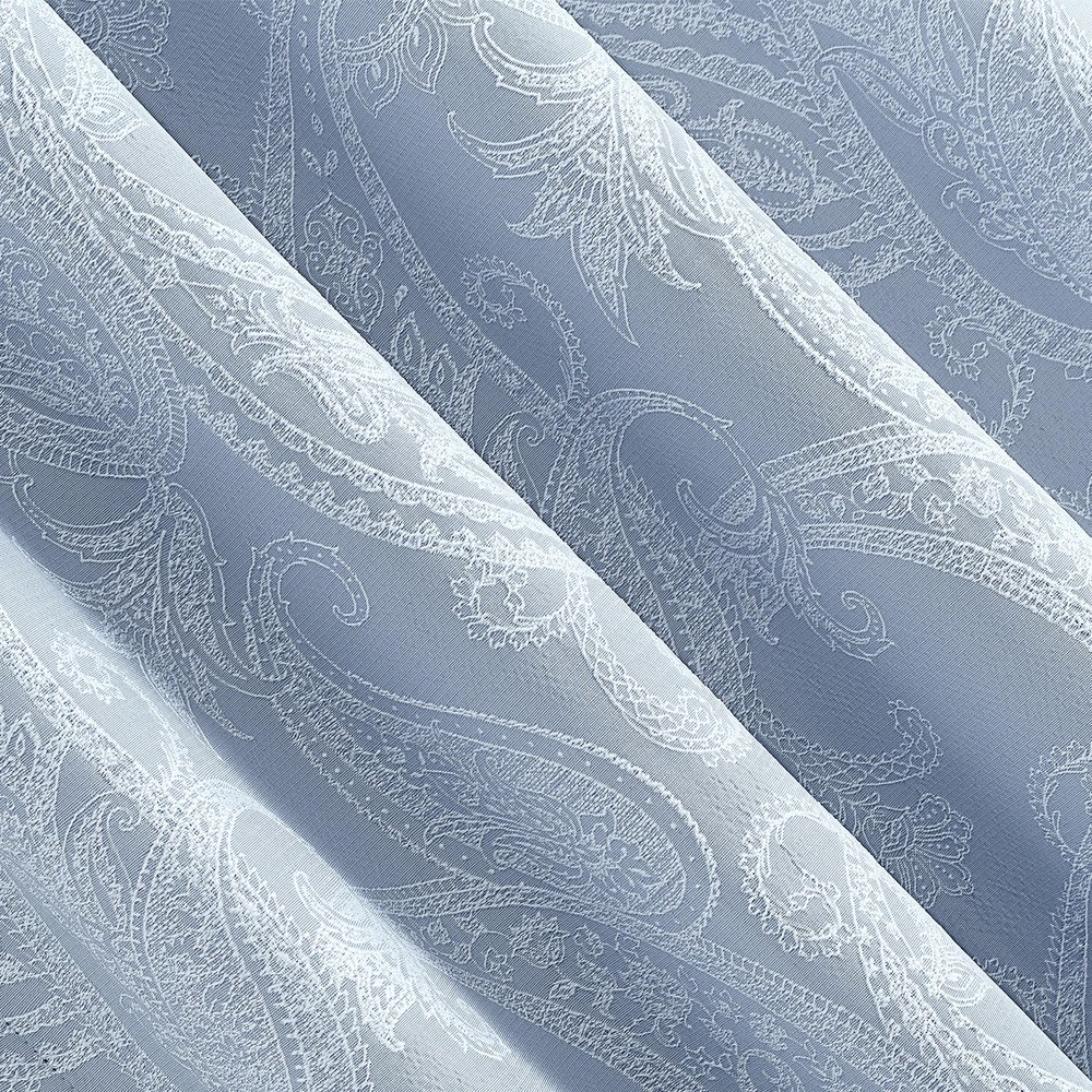 Featuring an intricately embroidered paisley pattern, Pedra Paisley Embroidery 100% Blackout Back Tab Curtain Panels add delicate detail to any living space. Equipped with back tabs for easy hanging on standard curtain rods up to 1.5" in diameter. Extreme Blackout™ Thermal Lining is laboratory tested to block out 100% of light, reduce outside noise by up to 40%, and decrease energy lost through your windows by up to 40%. Comfort is optimized with thermal properties that help keep summer heat and winter chill out of your home. Built-in metal grommets allow for easy slide-through installation on curtain rods up to 1.5" in diameter. Hang in your entertainment room to eliminate screen glare and reduce distracting outside noise, or in your bedroom for enhanced privacy and a sounder, more uninterrupted sleep. Sold as individual panels measuring 40" width by 84" length in color tranquil blue. Measure carefully before selecting your desired size and quantity. Rod not included. Machine wash cold on gentle cycle. Use non-chlorine bleach when needed. Tumble dry on low heat, using a cool iron as needed. Intricately embroidered paisley pattern adds delicate detail Extreme Thermal Blackout technology blocks out 100% of outside light Thermal properties help keep summer heat and winter chill out of your home Noise reduction up to 40% helps you get a sounder, more uninterrupted sleep back tabs fit curtain rods up to 1.5" in diameter Panels sold individually. Measure carefully prior to purchase (Image features 2 panels)