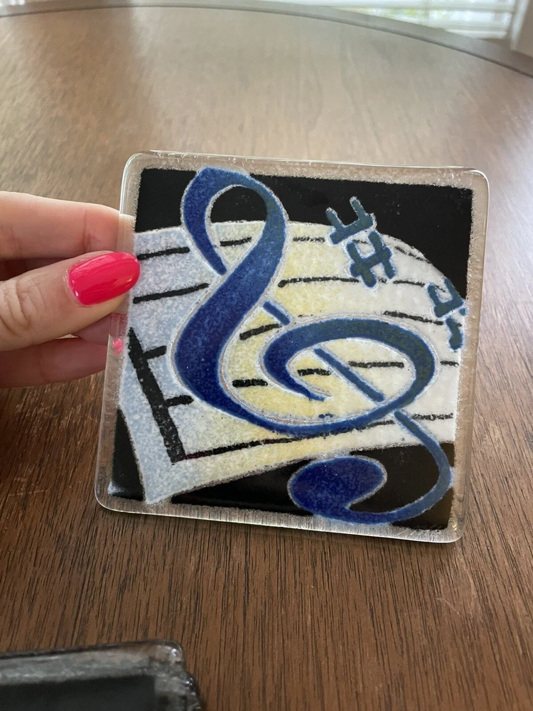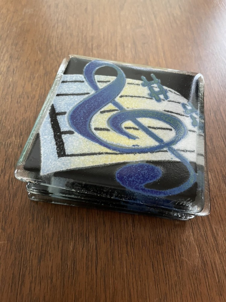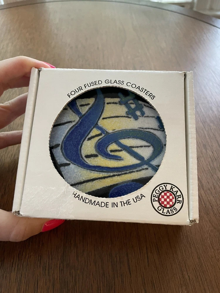 Set of 4 musical themed coasters. Great gift for a music teacher! Appear unused. Comes with original box (has been opened). Each measures 4" x 4".