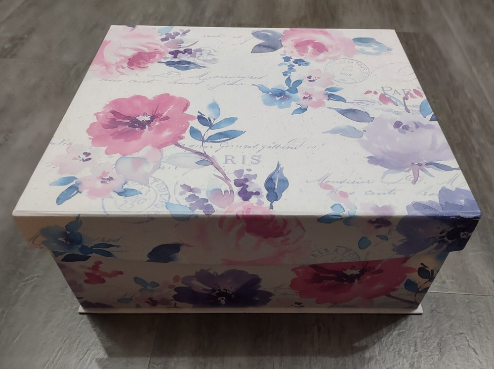 Pela Studio Paris floral rose keepsake box with lift flap lid. Large size measures 6.5"H x 14.5"L x 12.5"W. Very good condition. Please refer to photos as they are part of the description. Please ask if you have any questions. Payment is due within five days. Please look at the other items I have listed as I will combine shipping. Please do not leave negative or neutral feedback before contacting me with any issues as there is usually a solution to the problem. Returns will not be accepted after 30 days. Thanks for looking. DP