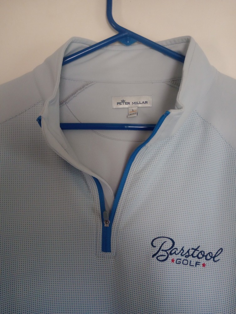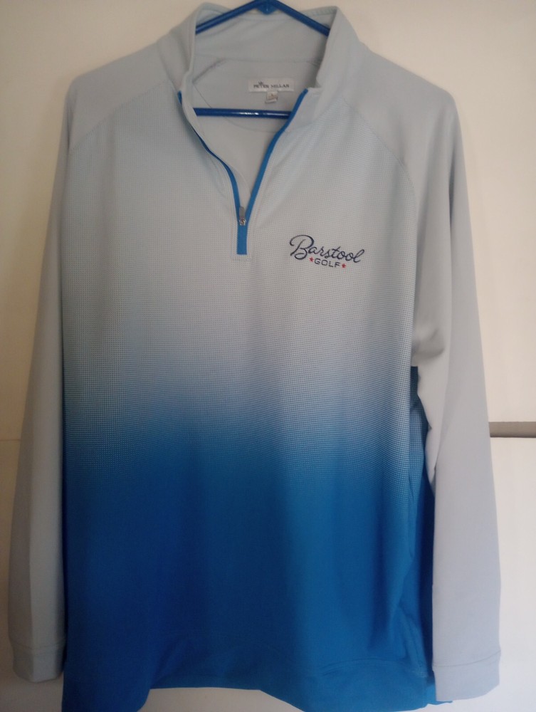 PETER MILLAR BARSTOOL GOLF PERTH DIP DYE QUATER ZIP PERFOMANCE PULLOVER. SIZE LARGE. MEASURES 29 1/2' LONG & 24'' FROM PIT TO PIT. POLYESTER/SPANDEX BLEND. LOOK PICTURES OVER. EXCELLENT CONDITION. FREE SHIPPING WITH TRACKING.
