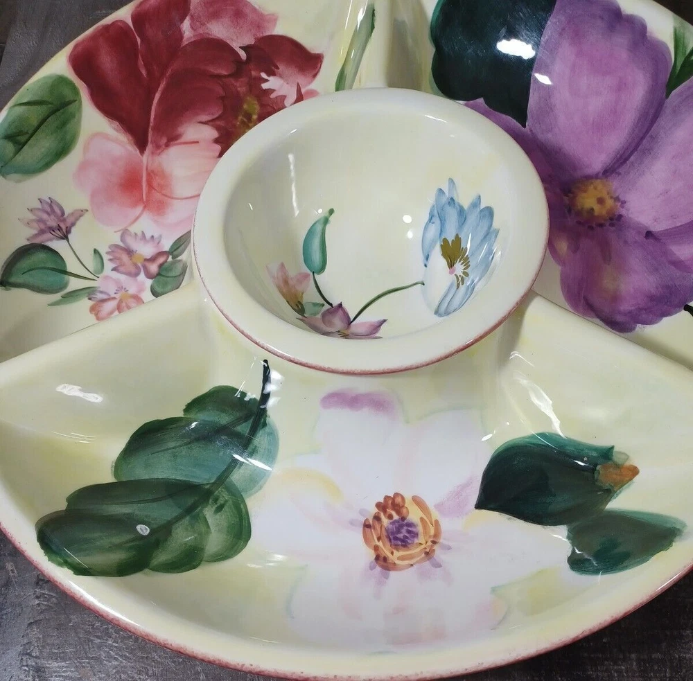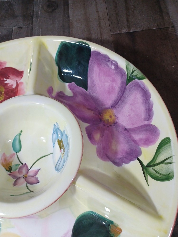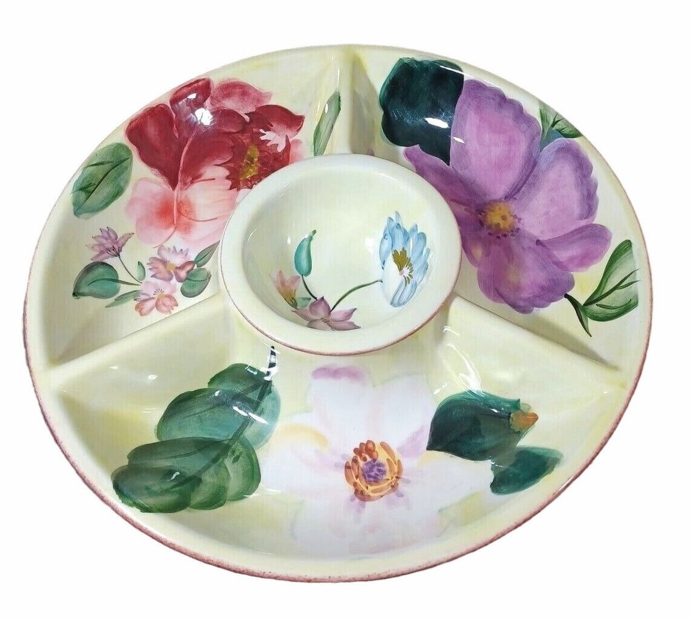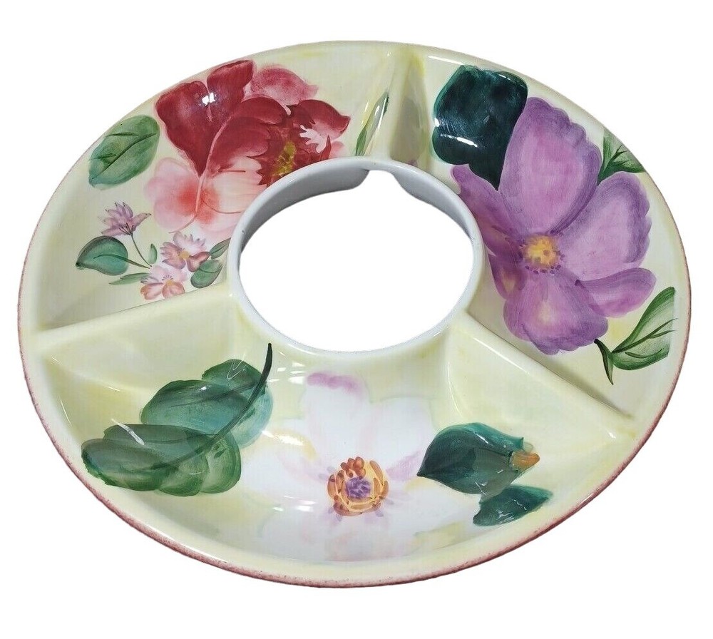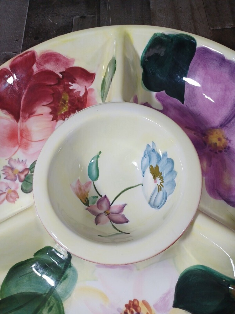 Pfaltzgraff 16.5 x 3" Flower Market Large Serving Center Bowl Set Chip Dip Tray Dish. This set is great for so many things! Chips and Dip Salad Bar Taco Bar Fruit and Yogurt Bar Ice Cream Sundae Bar Perfect For Smores fixings Fondue Bar So much more! It's in great preowned condition.