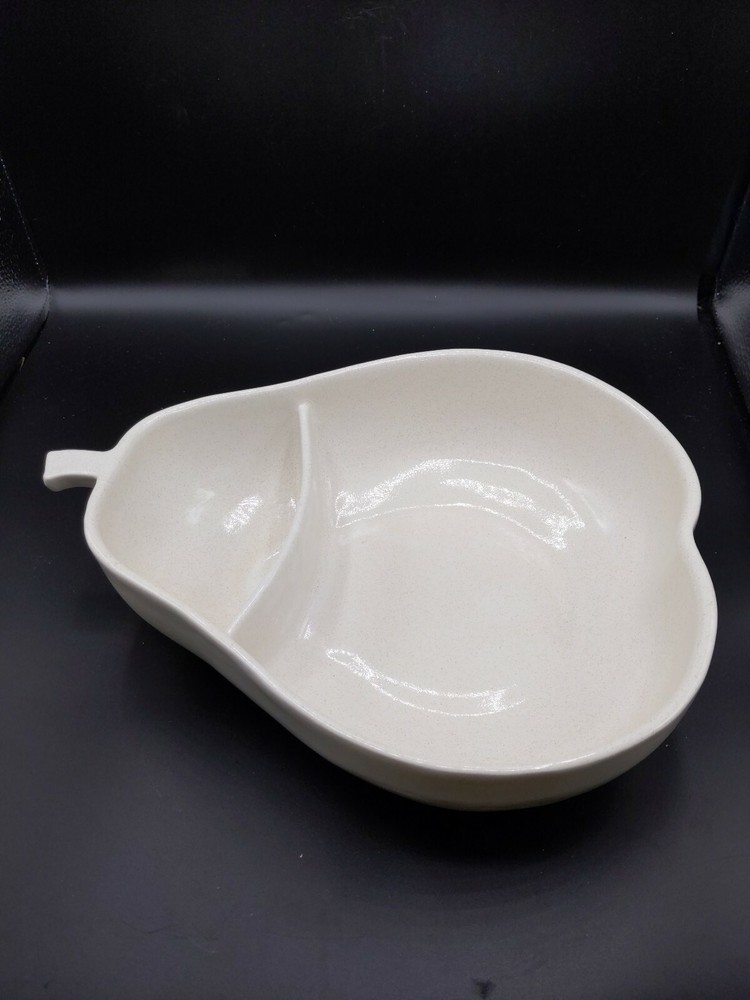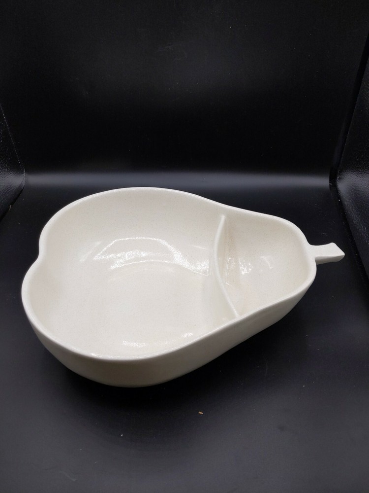 Pfaltzgraff Pottery Large Serving Bowl Divided Pear White Speckled Chip and Dip. Condition is Used.