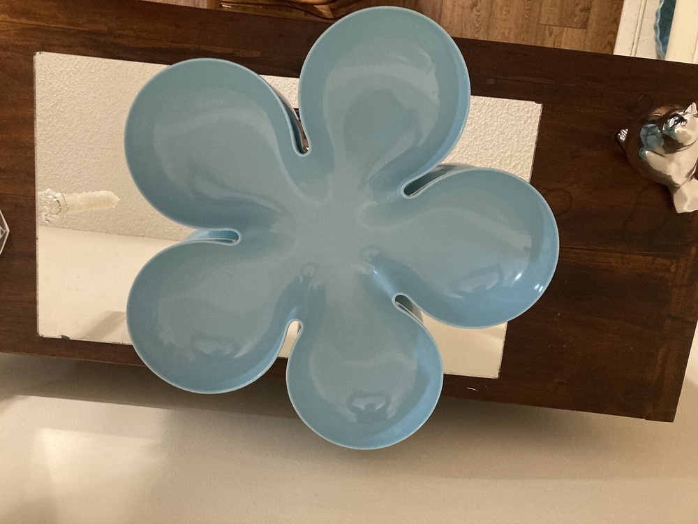 Add a touch of fun to your dining table with this stunning Pier 1 Imports serving tray. The aqua color and daisy shape make a great serving tray for chips. Crafted from high-quality melamine material, this large serving tray is durable and perfect for everyday use. Whether you're serving your favorite snacks or hosting a dinner party, this tray is sure to impress your guests. Personalization is not available for this item.