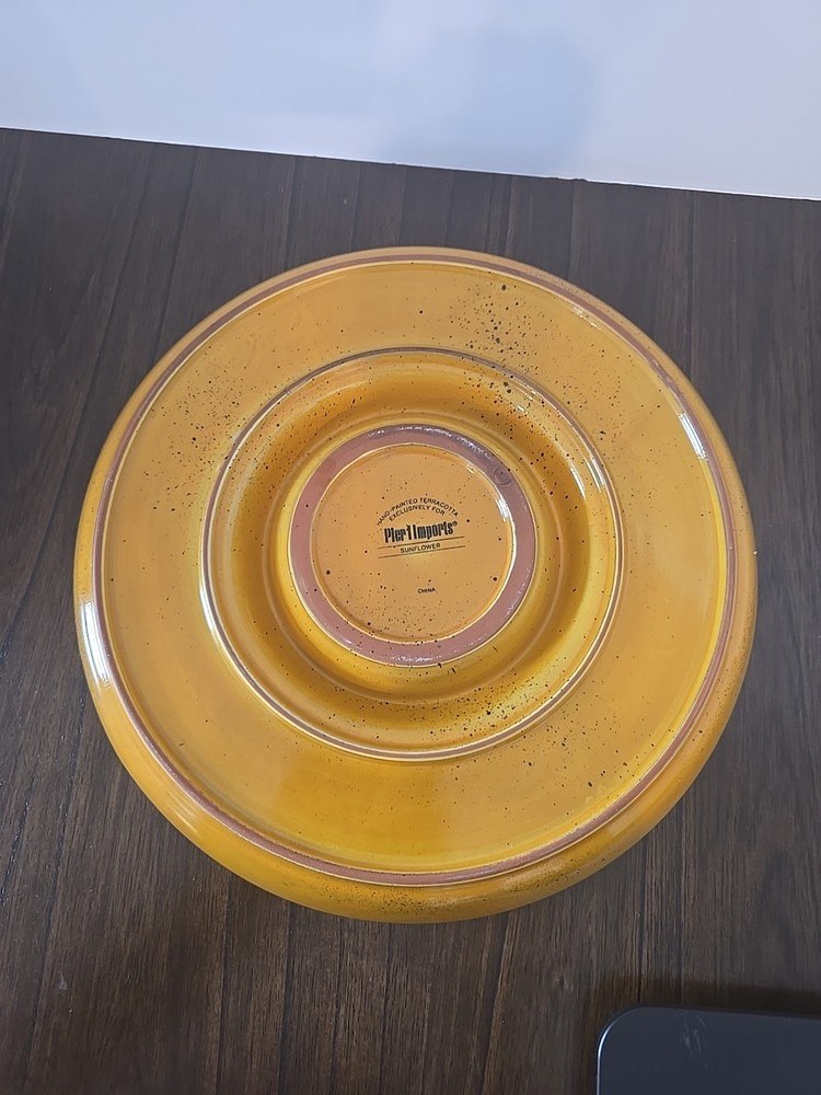 Elevate your next gathering with the Pier 1 Imports Chip and Dip Dish, a large ceramic tray that's as functional as it is stylish. The multicolored painted finish adds a playful touch to any table setting, making it perfect for all occasions. With two spacious compartments, this tray is designed to accommodate a variety of snacks and dips, ensuring that your guests have plenty to enjoy. Crafted with care, this chip holder boasts a durable ceramic construction and is made to withstand the demands of any party or event. The tray features a convenient design that makes serving and refilling a breeze. Whether hosting a casual game night or a sophisticated dinner party, this Pier 1 Imports Chip and Dip Dish is a must-have for any entertaining occasion.
