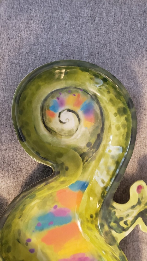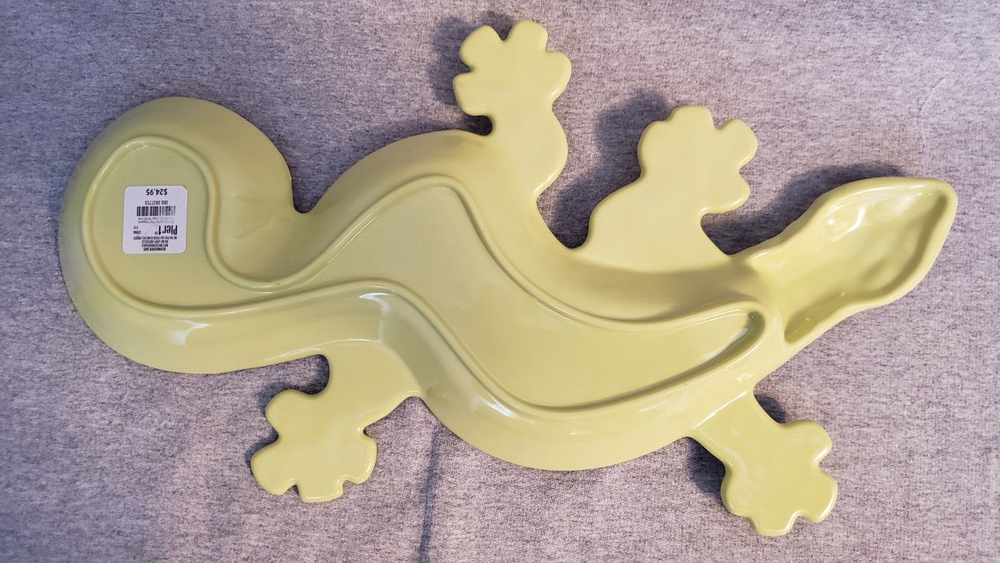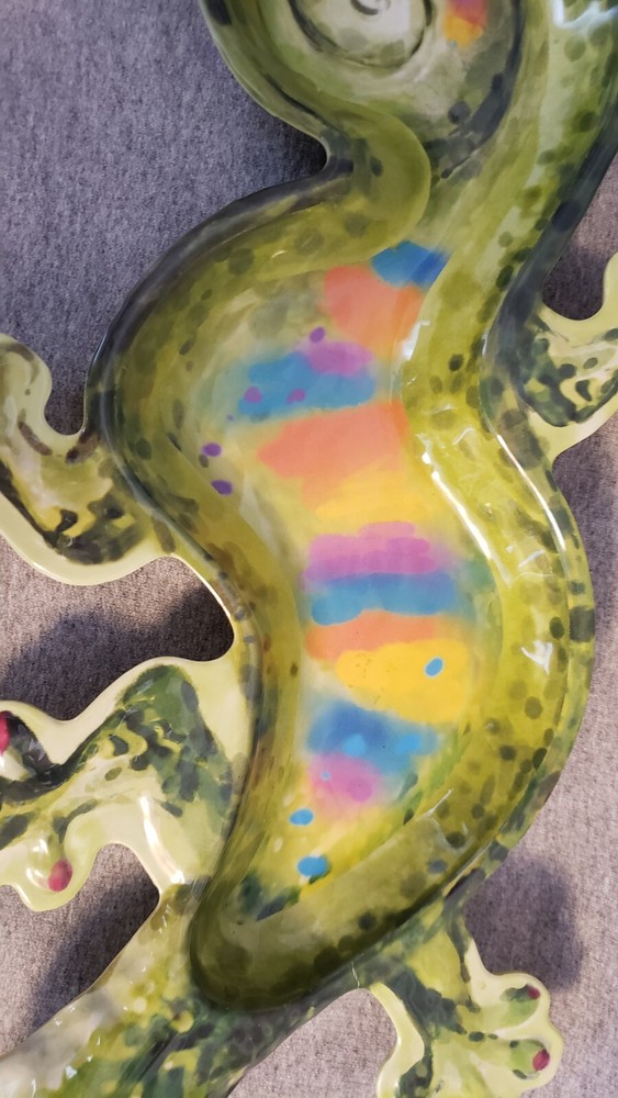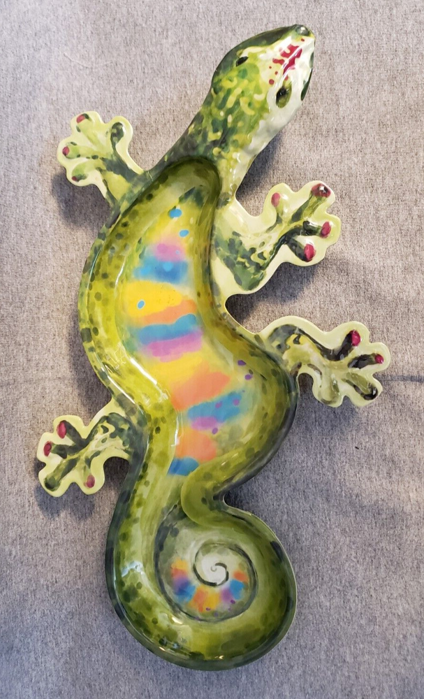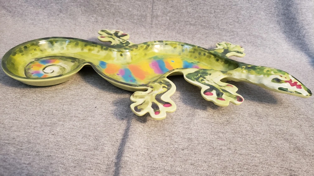 Pier 1 Imports GECKO Melamine Platter Chip and Dip Tray Green Rainbow NEW 19 inches from head to tail 11 inches wide back feet...