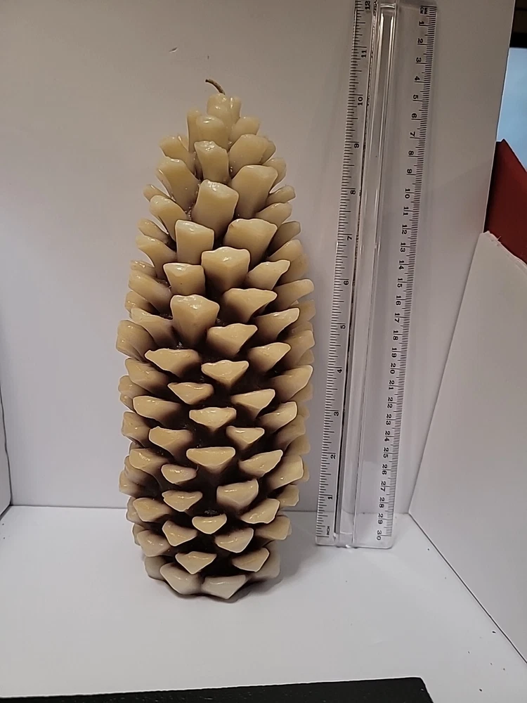 The Pinecone Candle by HomeWorx Harry Slatkin is a large, multicolored wax candle measuring 10 inches height and 4" width. Handmade in the United States, this decorative candle features a pinecone design and a Harvest Leaves scent. It is a scented candle with a standard wick, perfect for indoor use in a traditional style setting. The candle is unburned and is New Old Stock, making it a unique and nature-themed addition to any home decor. This candle simply smells amazing. This item was an estate find. Please refer to photos for additional details and visual information and use the Zoom function if need be, prior to making a purchase. The photos that are featured represent the product being sold. This product comes from a smoke-free, pet free home. Enjoy, and have a blessed day.