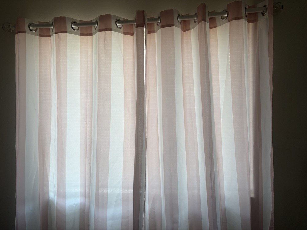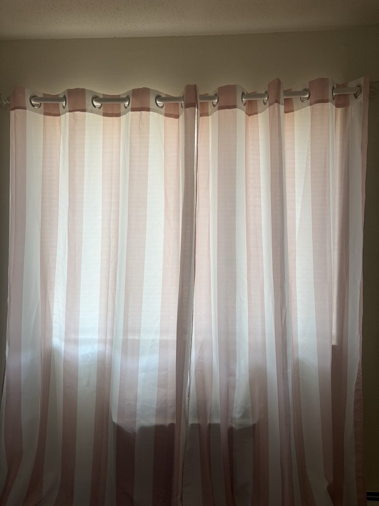 Sun Zero Valencia Cabana Stripe Indoor/ Outdoor Curtain Panel 54" x 84" - Rose Quartz No damage or stains, very cute
