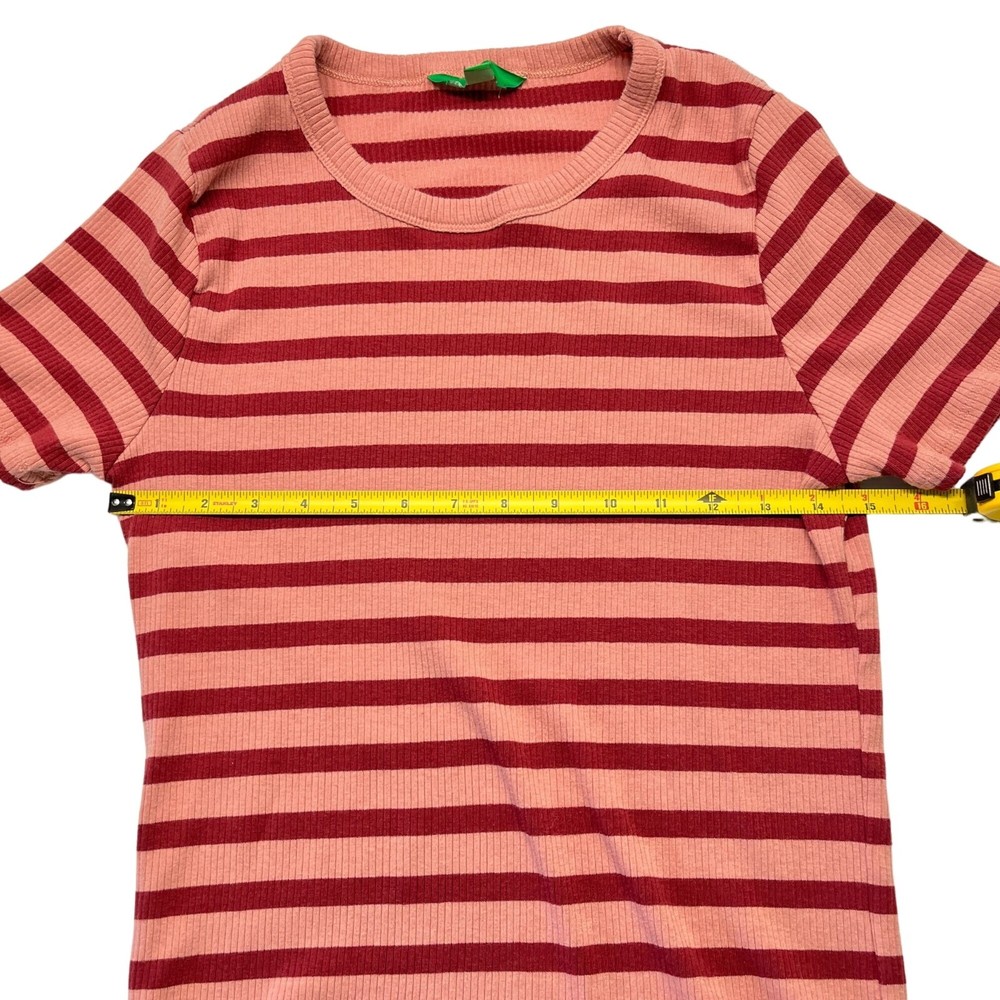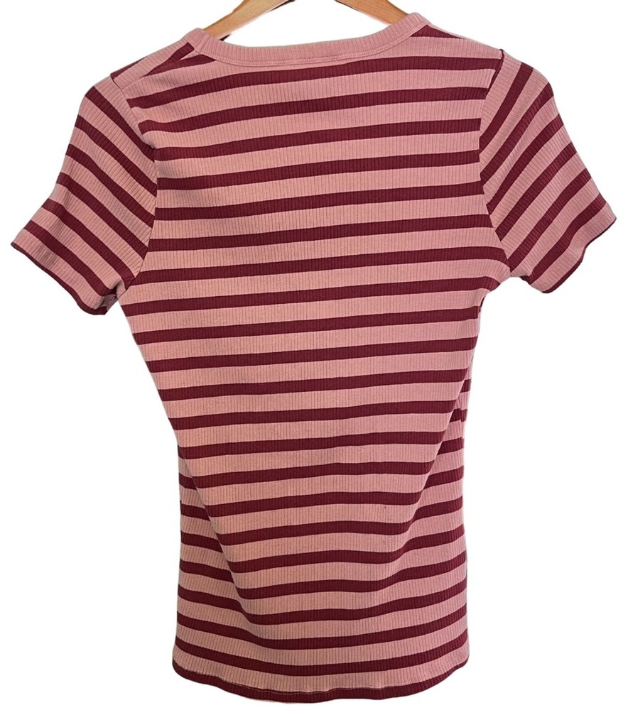 This ribbed t-shirt offers a casual yet polished look with its pink and burgundy stripes. Made from a cotton blend, it ensures comfort and breathability. Very nice condition. • Ribbed fabric for added texture • Short sleeves and crew neckline • Stretchable material for flexible fit Approximate Measurements: Armpit to Armpit: 15" Full Length: 25.5" Please see pictures for condition. If you have any questions, please let me know. Thank you for visiting our Ebay Shop. We are happy to consider all reasonable offers. Discounted combined shipping is available for multiple item purchases. We pride ourselves on customer service. If you are not happy with your purchase, please contact us within 30 days for a hassle free return..