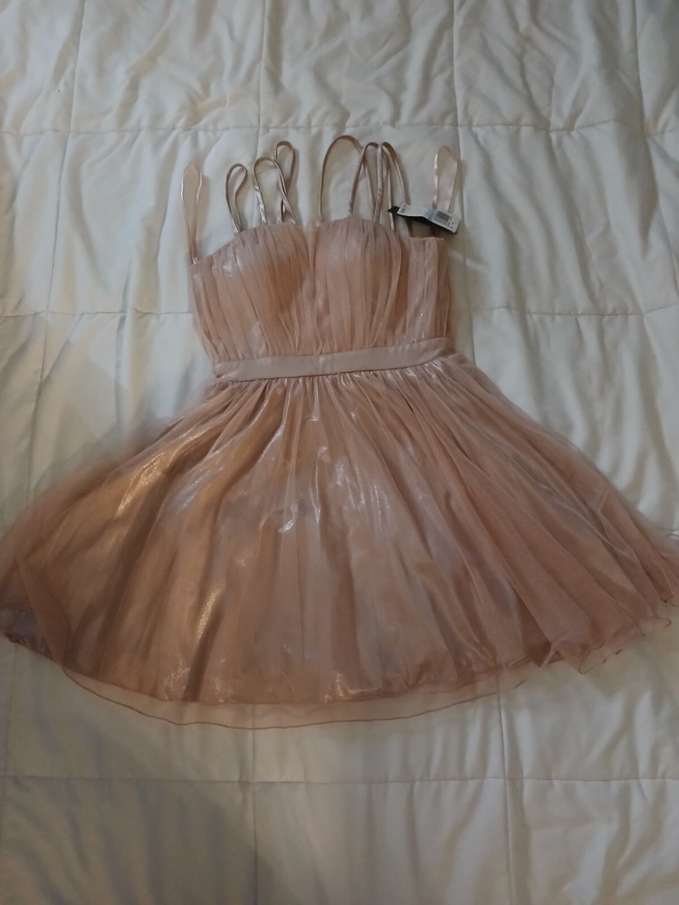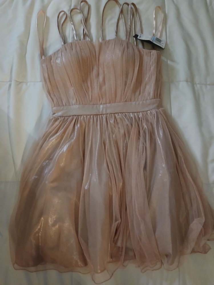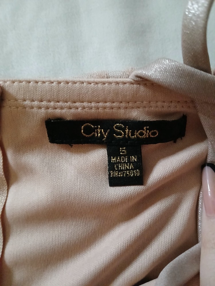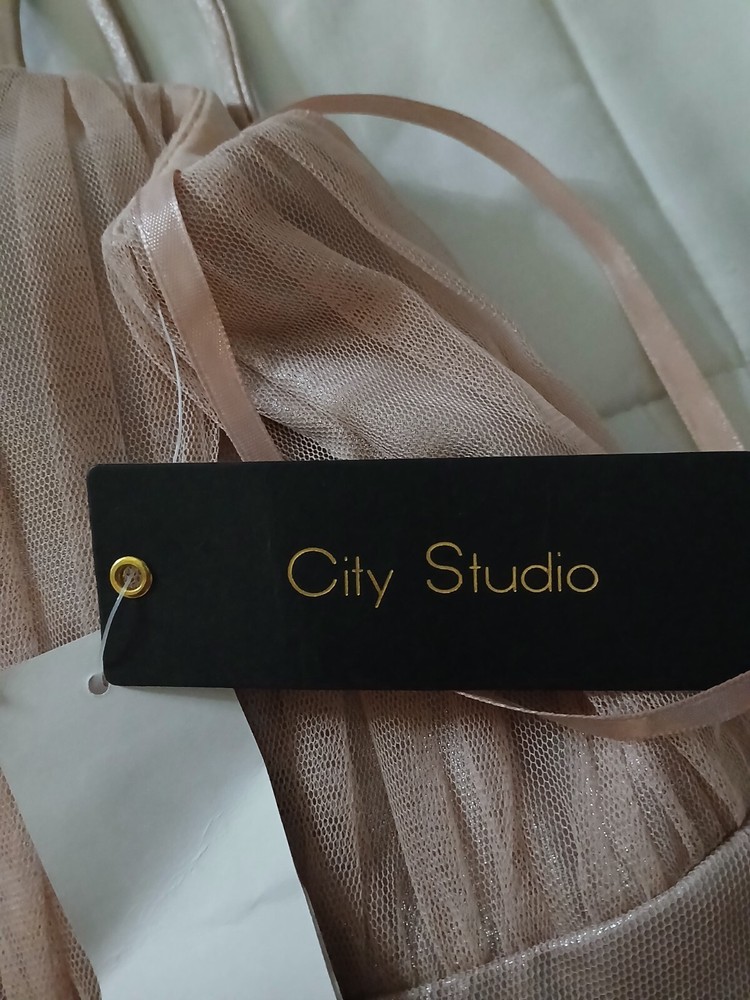 This beautiful pink dress from City Studio is perfect for any occasion. With a flattering V-neckline and strappy sleeves, it's made from soft and breathable mesh fabric, ensuring comfort and style. The dress has a zip closure and fits in a size 5. Whether you're headed to a party, formal event, or just a fun night out, this knee-length dress is sure to turn heads. Its fit and flare style accentuates your curves, while the solid pattern and pretty pink color add a touch of femininity. Don't miss out on this stylish addition to your wardrobe!