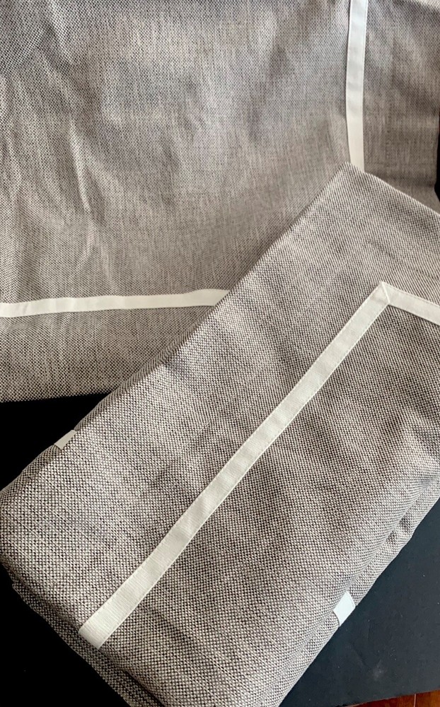 Add a touch of modern elegance to your bedroom with these Madison Park Signature Euro shams. The shams are made of high-quality polyester twill featuring a beautiful twill pattern in light and dark gray and gold colors. It is designed to fit a Euro size pillow , measuring 30 inches in both length and width. The ribbon-enhanced sham has a button closure and is perfect for adding a pop of color and style to your bedroom decor. Whether you're looking to complement a classic or modern style, this pillow sham is the perfect choice. Has a nice solid feel to the fabric. Not a flimsy fabric. Looks and feels luxurious. Enhance your home decor with this beautiful and durable pillow sham from Signature Madison Park. Higher end of their brand. Set 3