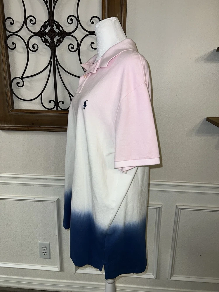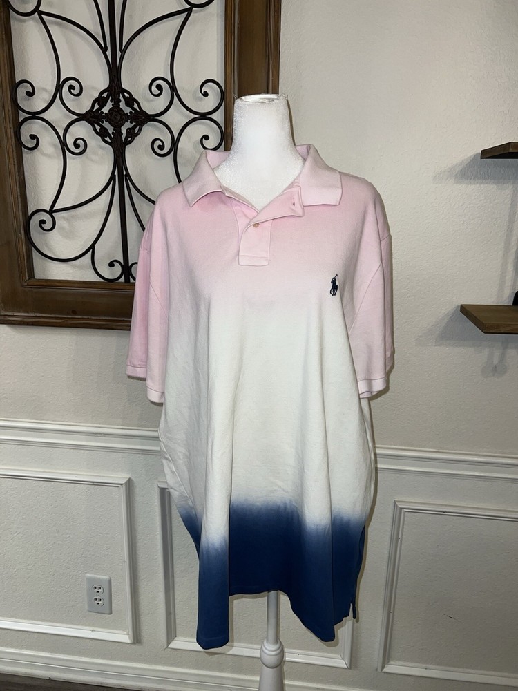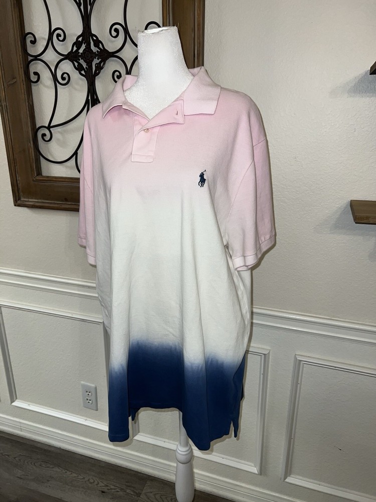 Like New Polo Ralph Lauren PINK BLUE DIP DYE Slim Fit XXL...