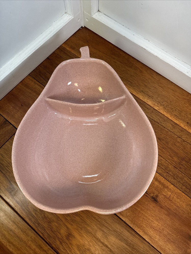 Poole Pottery Pear Divided Dish Pink Speckled MCM Vintage Chip & Dip...