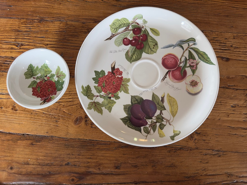 Beautiful Serving Platter with Bowl, perfect for chips and dip! Portmeirion Pomona pattern. Excellent condition without chips, marks, or flaws.
