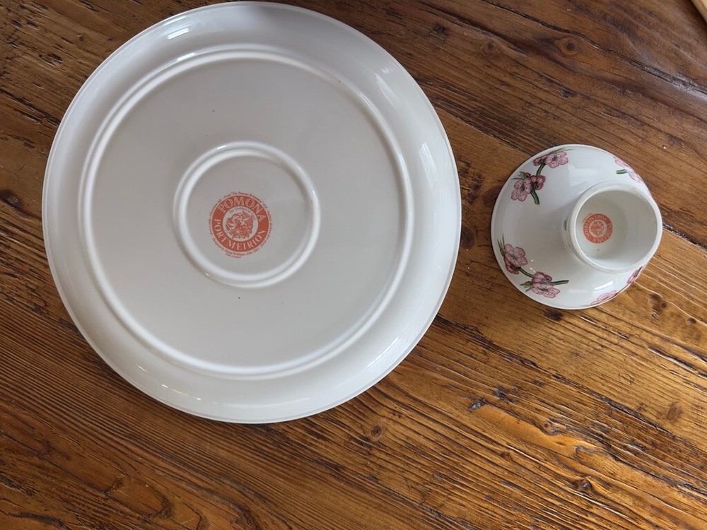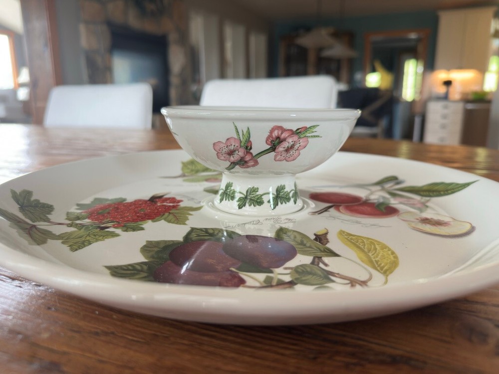 Beautiful Serving Platter with Bowl, perfect for chips and dip! Portmeirion Pomona pattern. Excellent condition without chips, marks, or flaws....