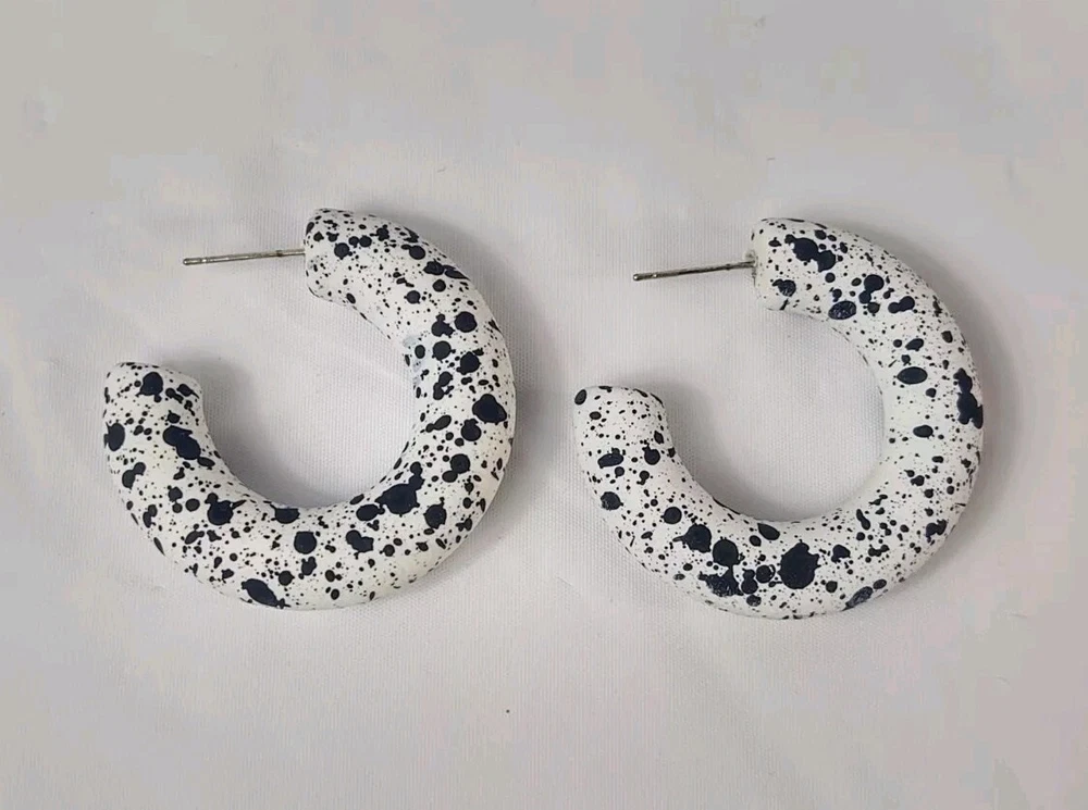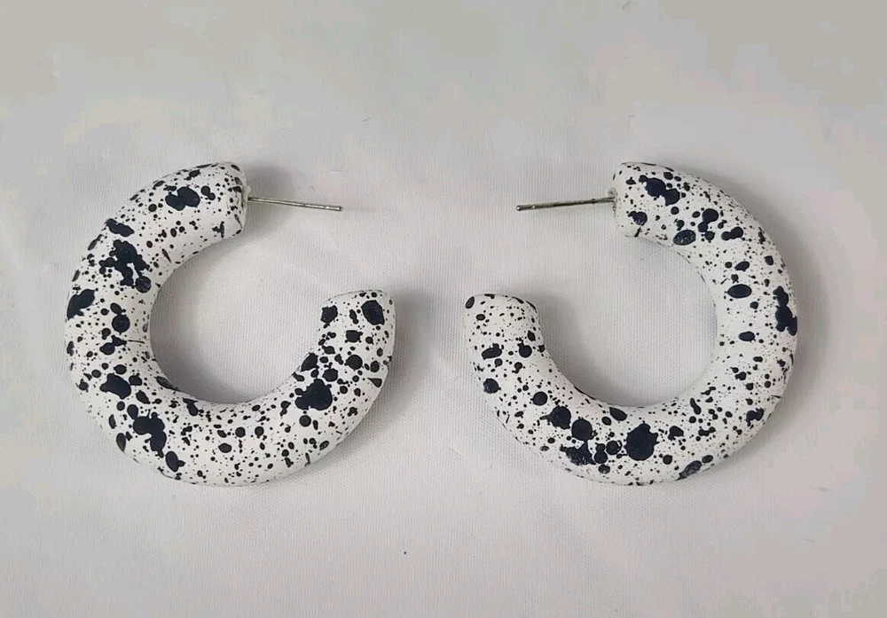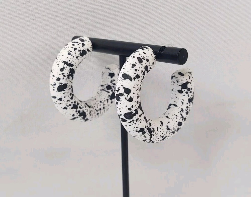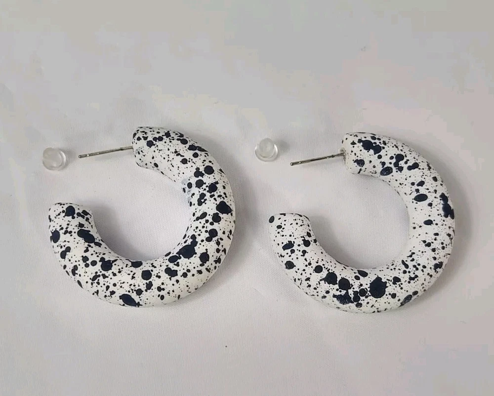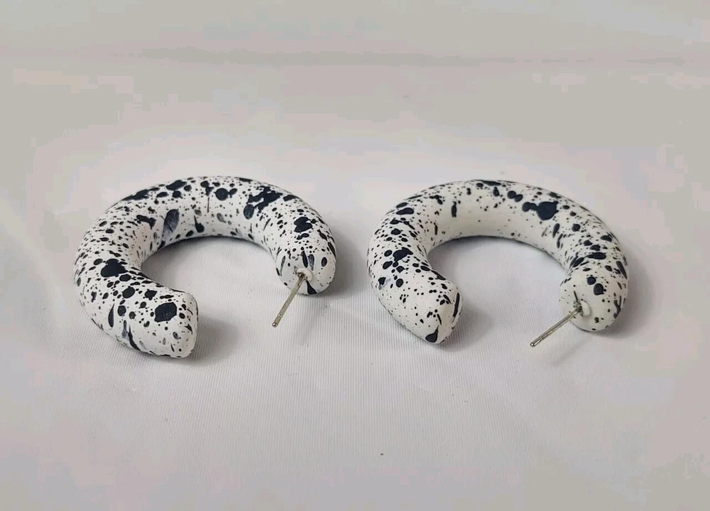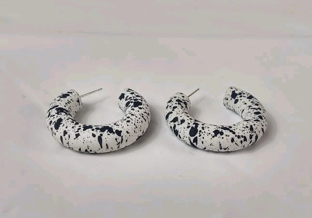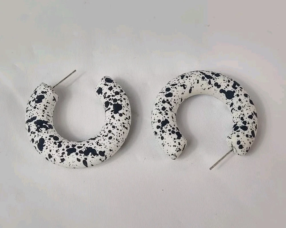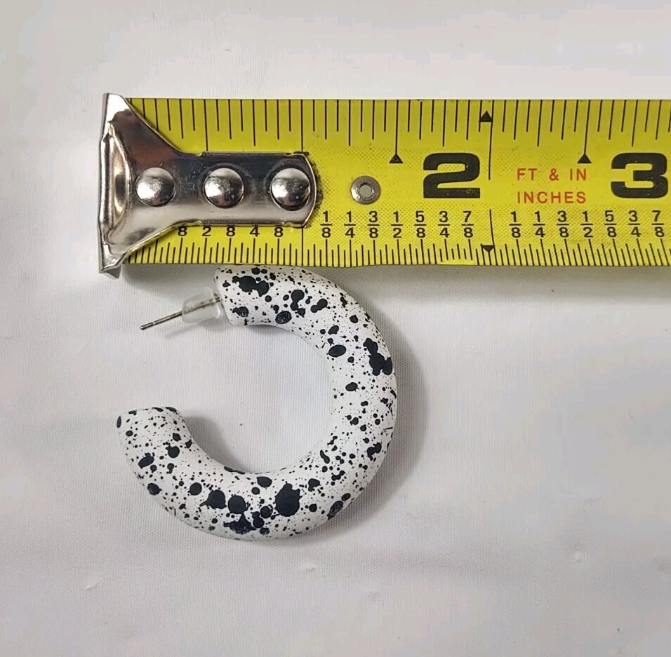 Post Pierced Earrings C Shaped Hoops Black And White Paint Splatter Costume Jewelry...