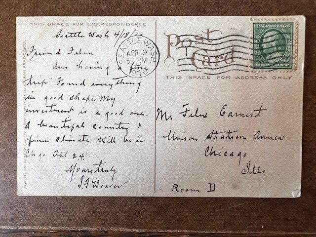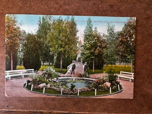Postcard, Fountain at Madison Park, Seattle, Washington posted in 1910 Vintage