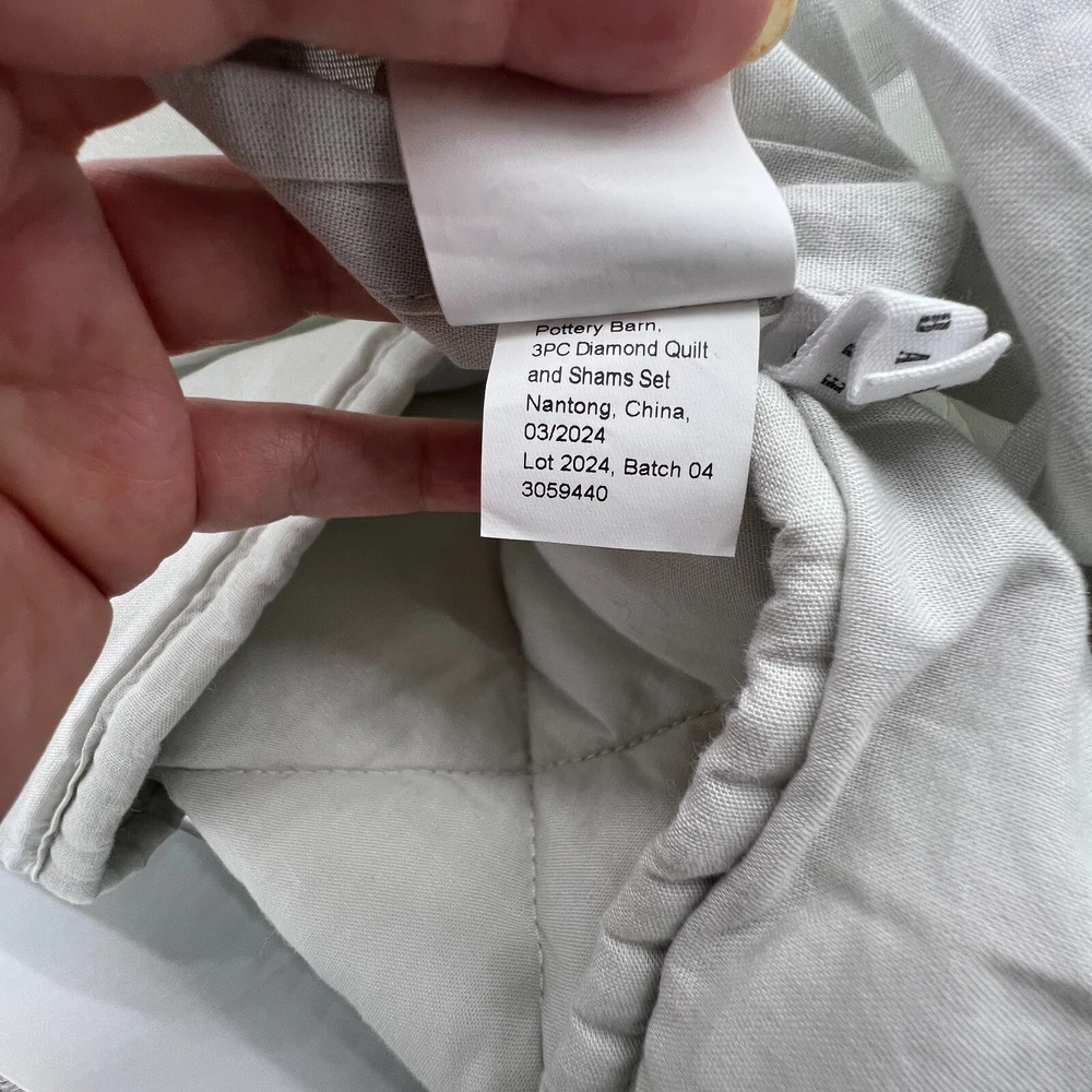 Potter Barn Diamond Quilt Standard Pillow Shams Soft Grey New without packaging Offers always welcome Fast shipping Combined shipping available for multiple items (message me before checking out) All measurements are approximate. I do my best to photograph and show all aspects of an item, please see all photos and the condition description before purchase. If you have any questions or concerns, feel free to send me a message! Handling time is two business days. Item may be returned within 14 days of receipt. Buyer is responsible for return shipping charges and money back will be provided when item is returned in same exact condition as shipped. Thank you so much! Michaela Closet Reloved