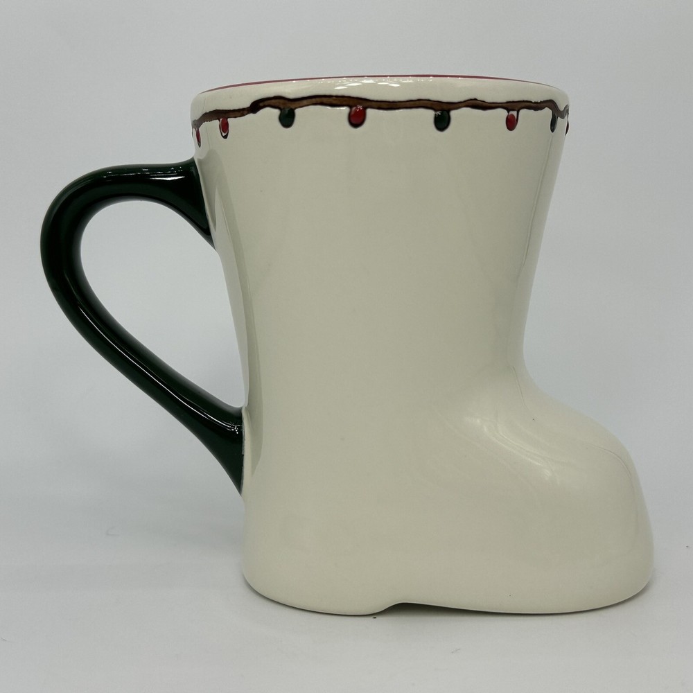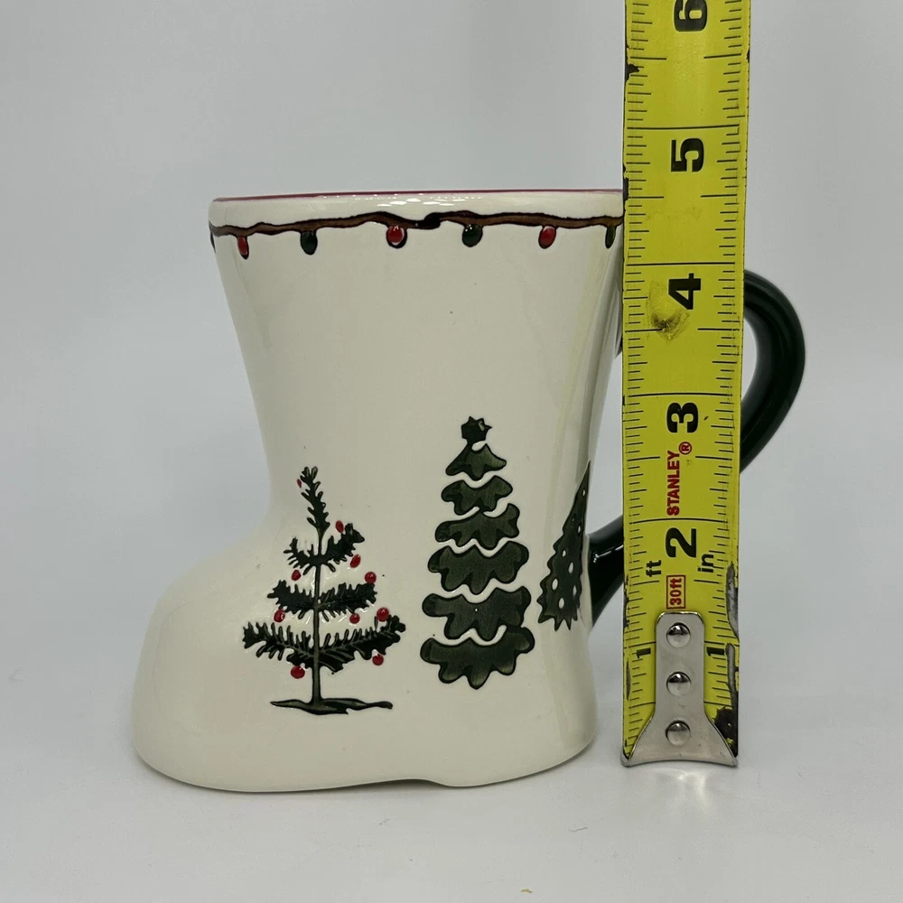 Potters Studio Boot Shaped Debossed Christmas Lights Trees Design Coffee Mug Cup. Excellent, pre-owned condition. No chips or cracks.