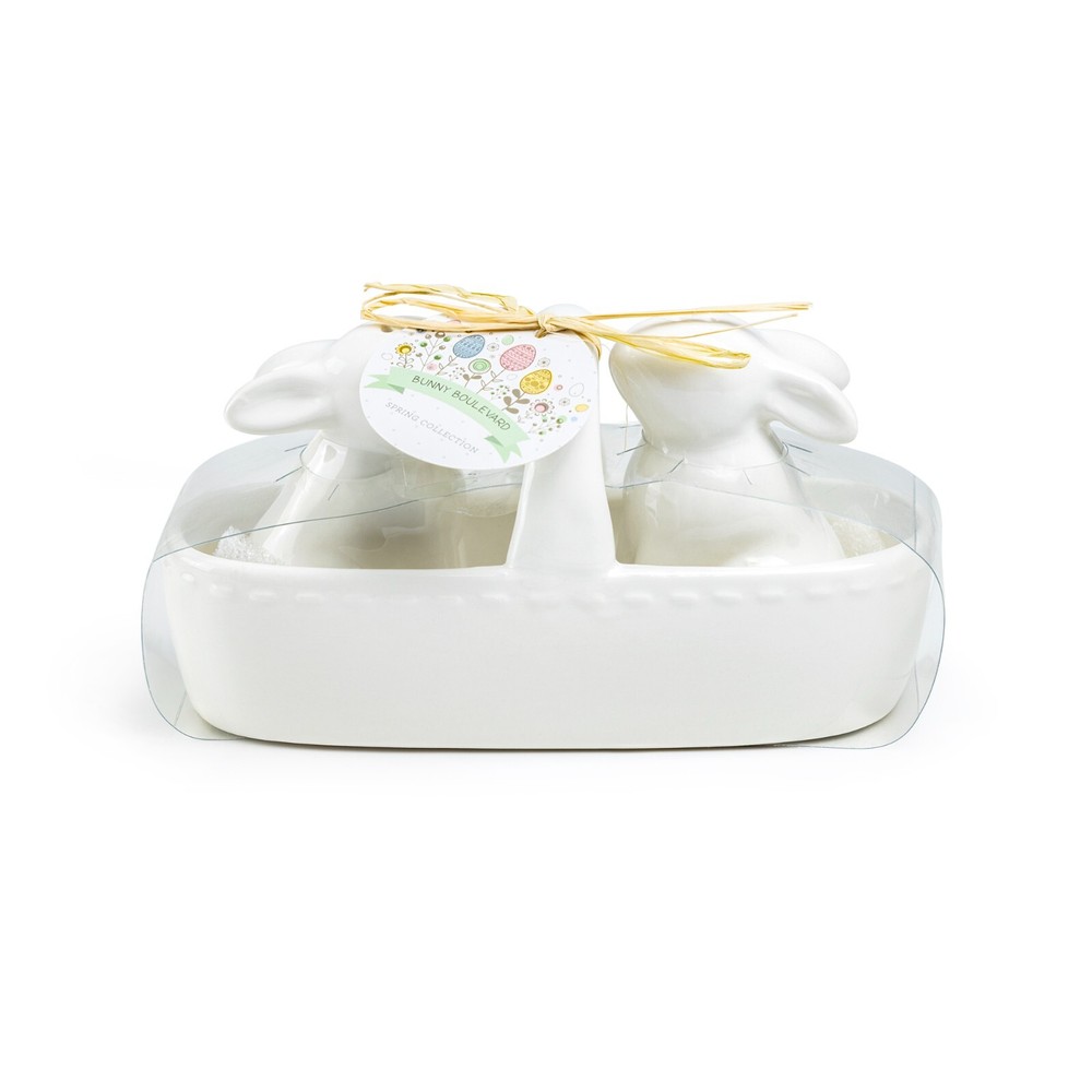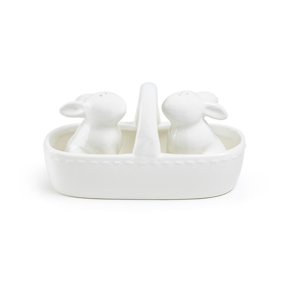 Each set includes - 1 salt shaker, 1 pepper shaker and 1 basket. This product is handcrafted, you may notice small air bubbles or pinholes on its surface. This is normal and to be expected as a result of the intricate ceramic manufacturing process. Specifications Figurine Dimension: 3.25” Height x 2.75” Width x 2" Depth Basket Dimension: 3.5” Height x 6.75” Width x 2.75" Depth Material Ceramic Care Advice Hand wash recommended Not microwave safe