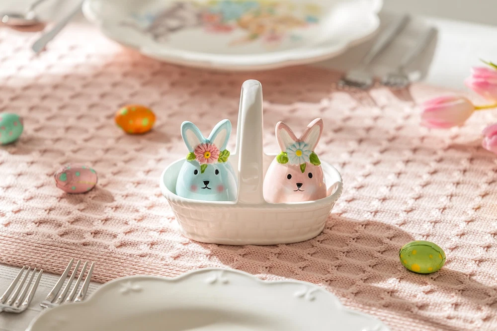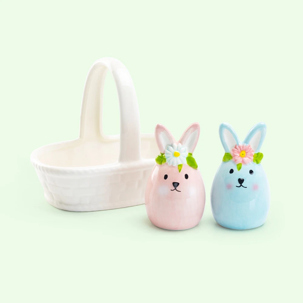 Each one set includes - 1 salt shaker, 1 pepper shaker and 1 basket. This product is handcrafted and you may notice small air bubbles, pinholes, or uneven paint on its surface. This is normal and to be expected as a result of the intricate ceramic manufacturing process. Specifications Figurine Dimension: 3.25” Height x 2” Width x 2" Depth Basket Dimension: 4.5” Height x 5.5” Width x 3.25" Depth Material Ceramic Care Advice Hand wash recommended Not microwave safe