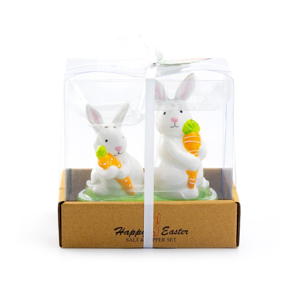 Each one set includes - 1 salt shaker, 1 pepper shaker and 1 stand with a gift box. Overall Dimension: 4.5” Height x 4.5” Width x 3" Depth Hand wash recommended Not microwave safe