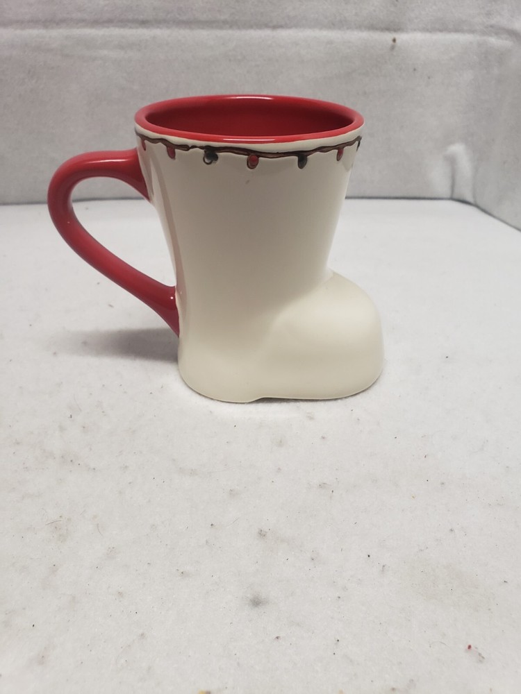 Potter's Studio Red Truck w Christmas Trees Boot-shaped Coffee Mug Holiday 12 oz....