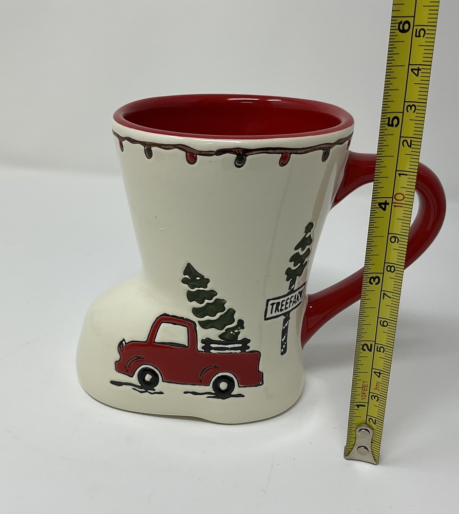 ***** GUARANTEED DELIVERY TO USPS WITHIN 24 HOURS (OR LESS) OF PURCHASE ***** Pre-owned but in excellent condition. No chips, cracks or stains. Get into the holiday spirit with this charming red truck coffee mug from Potter's Studio. The boot-shaped mug features a festive Christmas tree design, perfect for enjoying your favorite hot beverage during the holiday season. Made with high-quality materials, this mug is a great addition to any collection and is sure to bring joy to your morning routine. Whether you are a coffee lover or a tea enthusiast, this mug is sure to become your favorite holiday companion.