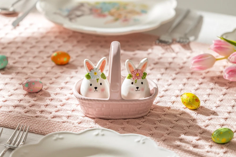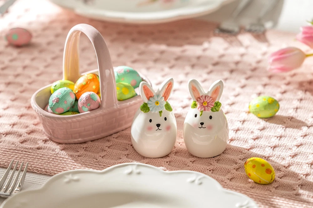 Each one set includes - 1 salt shaker, 1 pepper shaker and 1 basket. This product is handcrafted and you may notice small air bubbles, pinholes, or uneven paint on its surface. This is normal and to be expected as a result of the intricate ceramic manufacturing process. Specifications Figurine Dimension: 3.25” Height x 2” Width x 2" Depth Basket Dimension: 4.5” Height x 5.5” Width x 3.25" Depth Material Ceramic Care Advice Hand wash recommended Not microwave safe