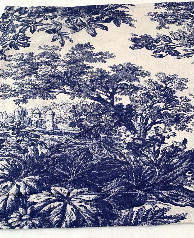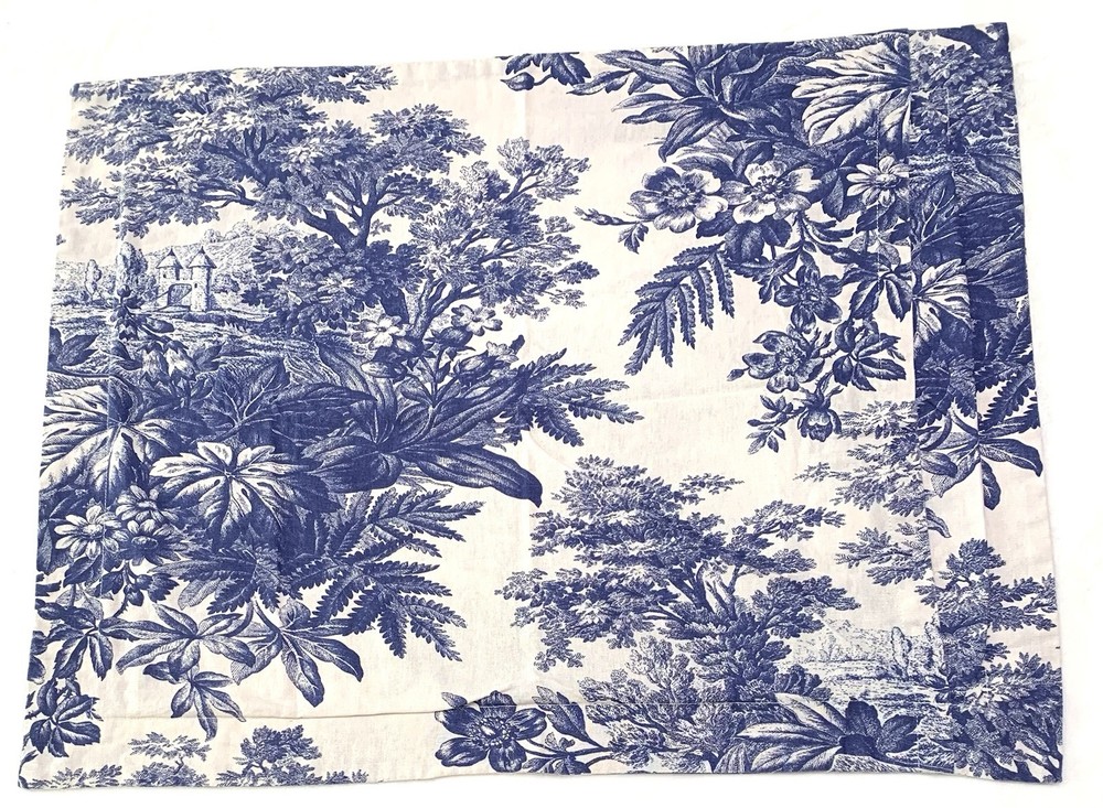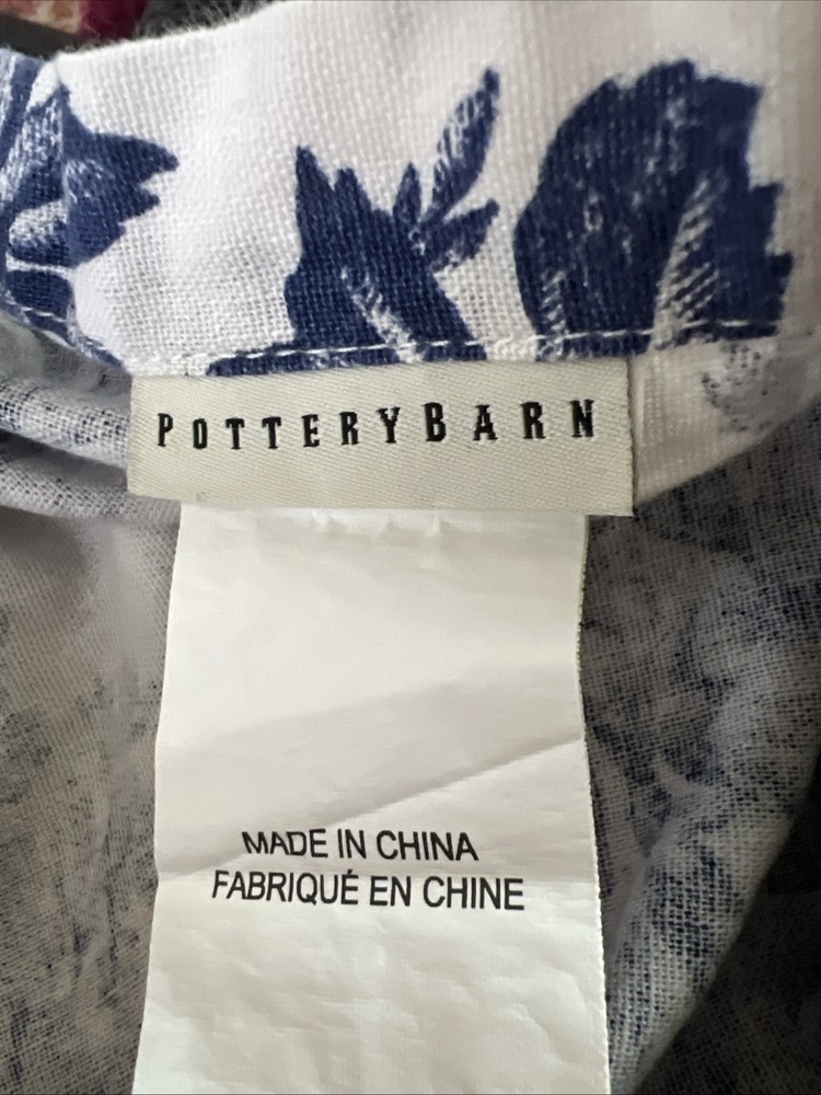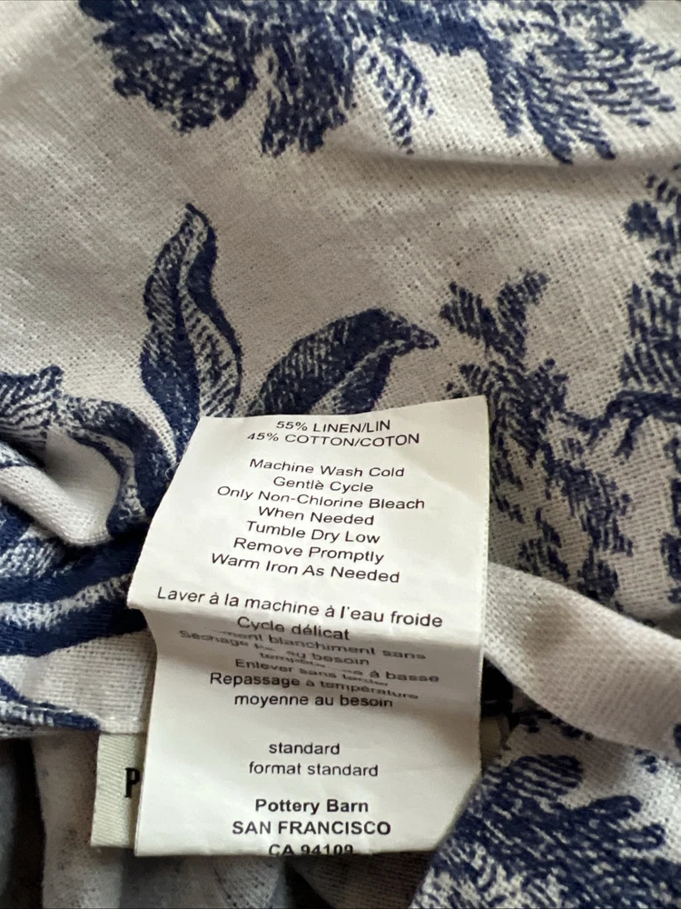 Add a touch of French Country charm to your bedroom with this Pottery Barn pillow sham. The rectangular standard size sham features a beautiful blue nature print pattern with flowers and art themes. Made from a linen blend material with a cotton blend fill, it provides a comfortable and stylish addition to your bedding collection. The sham is machine washable with care instructions included. It measures 29.5 inches in length and 23 inches in width. Has a 2 inch border.