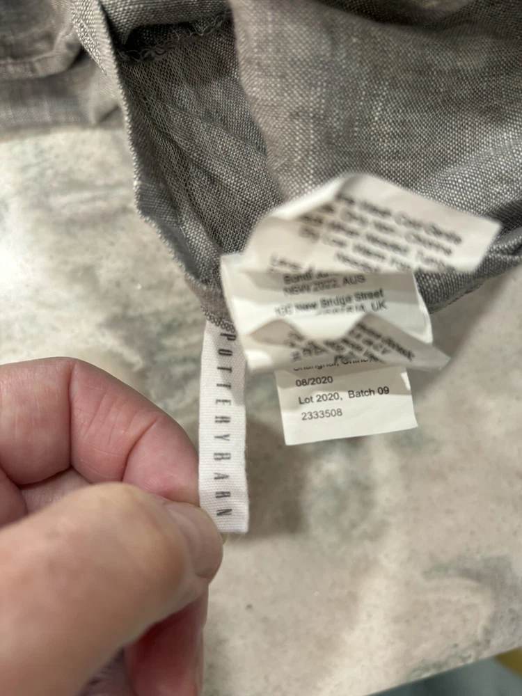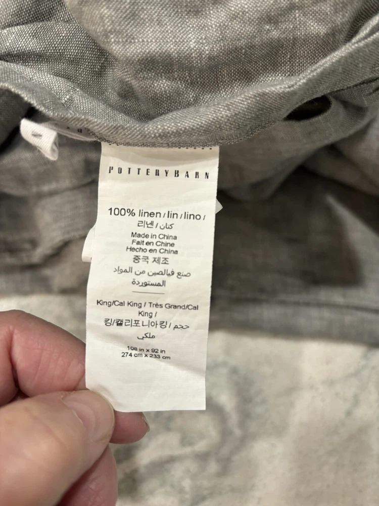 This is a fabulous Pottery barn California King size gray duvet cover. 100% Belgian flax linen. In very good preowned condition. Freshly Laundered. Measures 108" x 92". Please see pictures for a better description. Please read through ENTIRE listing before bidding*** No returns for items that do not fit!!!! Measurements are provided so that you may compare and make a confident bid. Please READ and agree to the following terms and details before you bid on this auction. If you have less than 10 successful transactions with eBay, please contact me before you bid or your bid may be automatically canceled. Payment accepted solely through eBay. Payment is due within 2 days or 48 hours. If you do not intend to pay within this period of time please DO NOT BID/BUY…. Otherwise, an unpaid case will be opened and item will be relisted. I do of course understand life happens sometimes and I am happy to work things out if there is an issue. I am pretty easy to work with but you HAVE to CONTACT Me and let me know, I cannot read minds. Thank you :) It has been my experience that the tags on the shoes and clothing pieces are not always accurate. Since 99% of the shoes, clothing and other treasures are not my own personal items, it is important for me as a seller to provide as much information as possible so that a buyer can make an informed decision and that is why I take the time to measure the shoes and clothes and various other treasures and provide those measurements in my descriptions. If you are unsure of a description or something in my auction, please ask questions prior to bidding as returns are not accepted at this time. Measurements are approximate to give you an idea of how an item will fit. If an item does not fit, please feel free to use my photos to list the item on eBay. I will list any flaws that I have detected. Please remember I am only human and if there seems to be an oversight that was clearly made on my part, please communicate with me so that I can resolve the issue before leaving negative or neutral feedback. I promise to make it right. My intentions are to treat everyone the way I love to be treated… with the best customer service possible. The items I sell come from a variety of sources including retail stores, outlets, yard sales, thrift stores and our own closets. Because of this I cannot always tell you everything about an item. I will however be up front and honest in my descriptions and would never sell anything that I wouldn't use for my own family. If you are sensitive to certain allergens, I ask that you please not bid. My items come from many different sources and I cannot guarantee that these items were not exposed to pets, smoke, perfumes or other allergens. Also, the color of items may vary due to photo quality and or computer screen resolution. Some colors can be difficult to describe & capture. Your monitor may show a slight variation from mine. The lighting on the camera will affect the pictures. If exact color is a concern, please contact me before you bid. Please make sure your shipping address is listed correctly in your eBay and PayPal accounts, BEFORE you make a payment. I ship Fed EX, USPS-Priority Mail, Ground Advantage. Shipping will be done within or close to two BUSINESS days after receiving a cleared payment. Any item over $199.99 will have a Signature Confirmation included in the shipping charge. This is required for eBay payments. This is not a retail store. All sales are final. I do not offer refunds on any item unless it is grossly misrepresented. Thank-you so very much for taking a look at my auction and happy bidding.